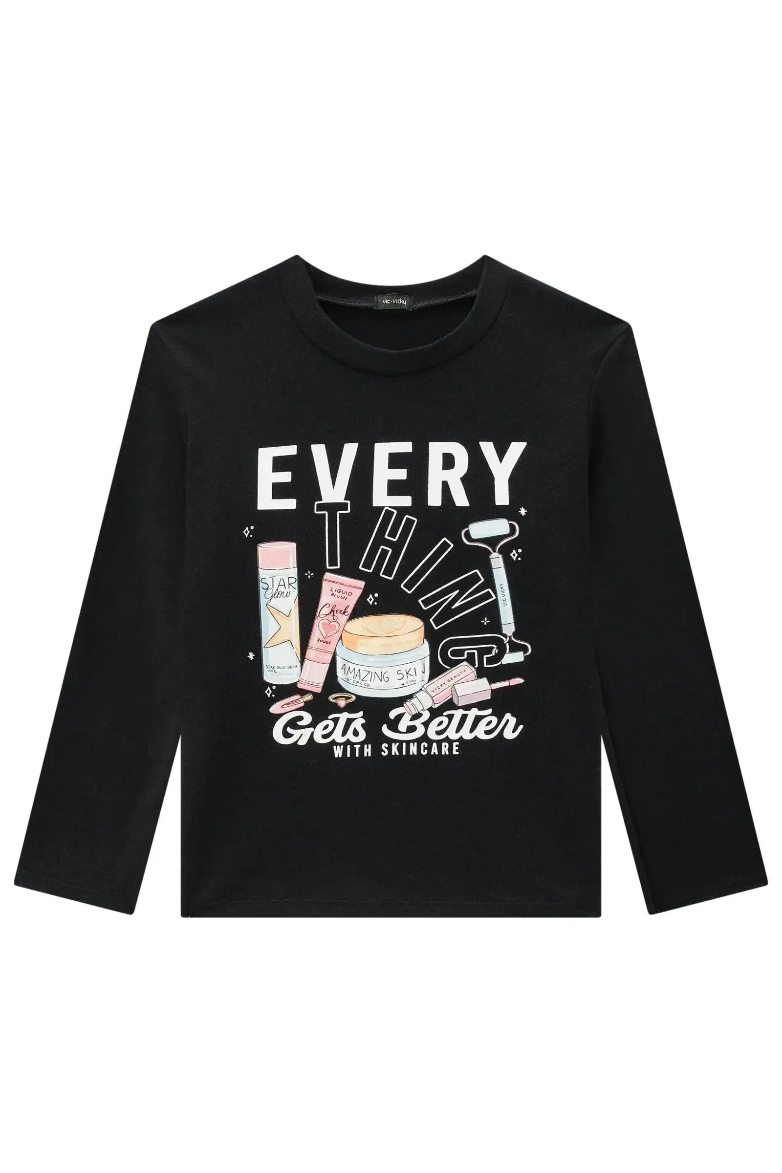 A blusa em cotton, é a escolha perfeita para as meninas que amam um look cheio de conforto, sem abrir mão do estilo no dia à dia! Disponível em uma cor super estilosa - preto - ela é uma peça essencial, perfeita para montar diversos looks e deixar o inverno das pequenas ainda mais estiloso! A estampa divertida, adiciona um charme especial à peça.