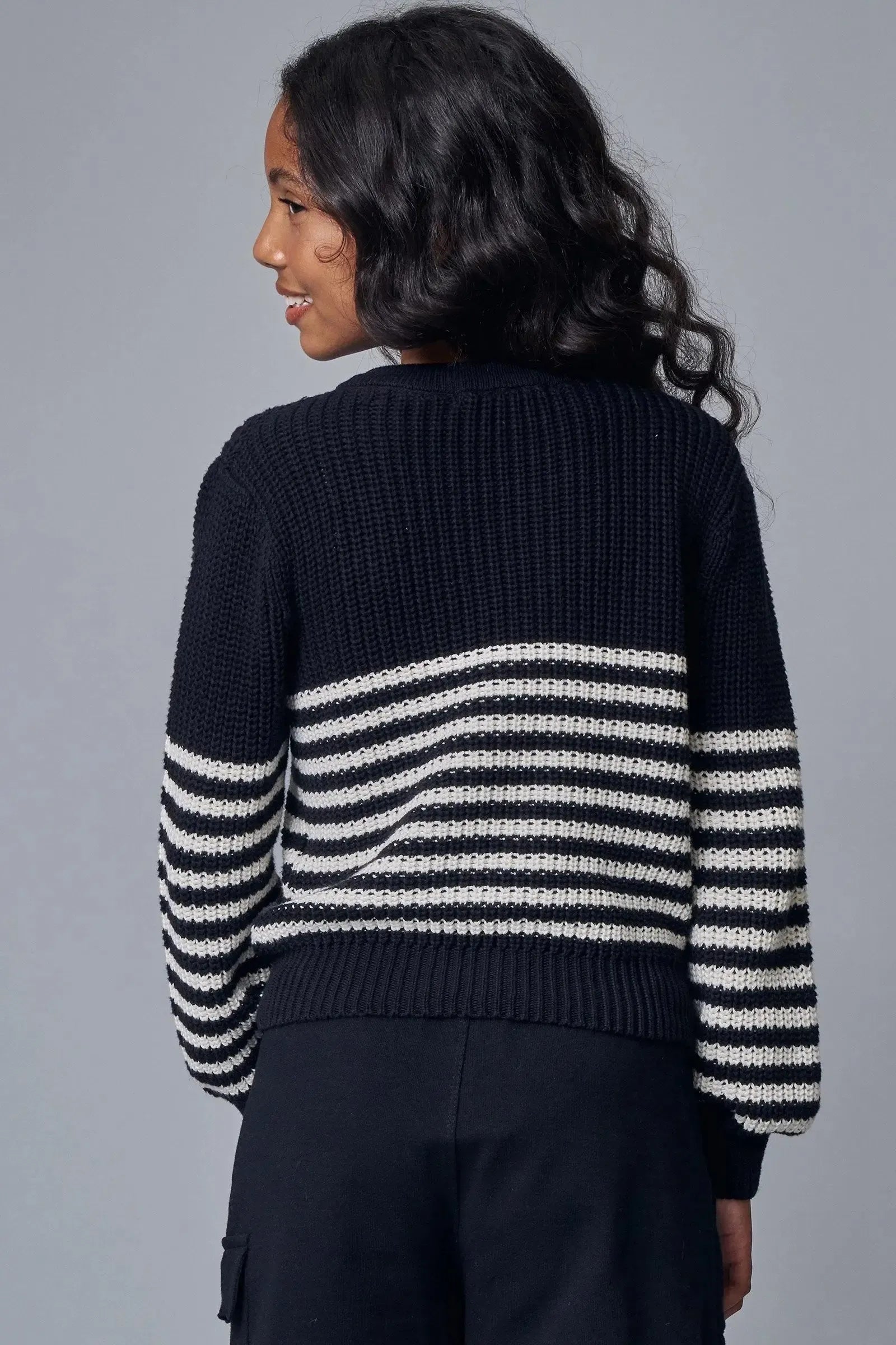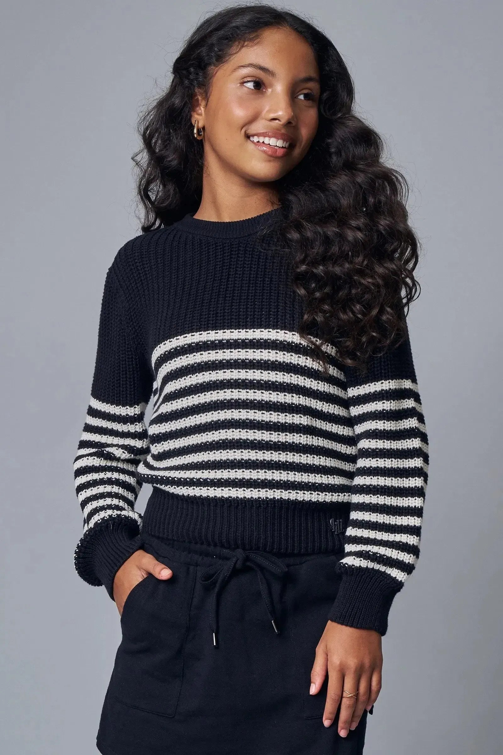 O blusão boxy em tricô 100% algodão, é a escolha perfeita para as meninas que amam um look cheio de conforto, sem abrir mão do estilo no dia à dia! Disponível em uma cor super estilosa - preto - ela é uma peça essencial, perfeita para montar diversos looks e deixar o inverno das pequenas ainda mais estiloso!