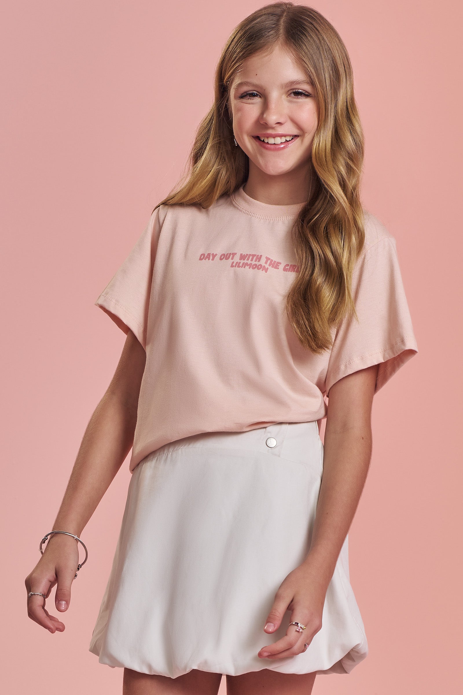 Confeccionada em meia malha leve e macia, oferece toque suave e caimento soltinho, perfeito para o dia a dia das meninas.