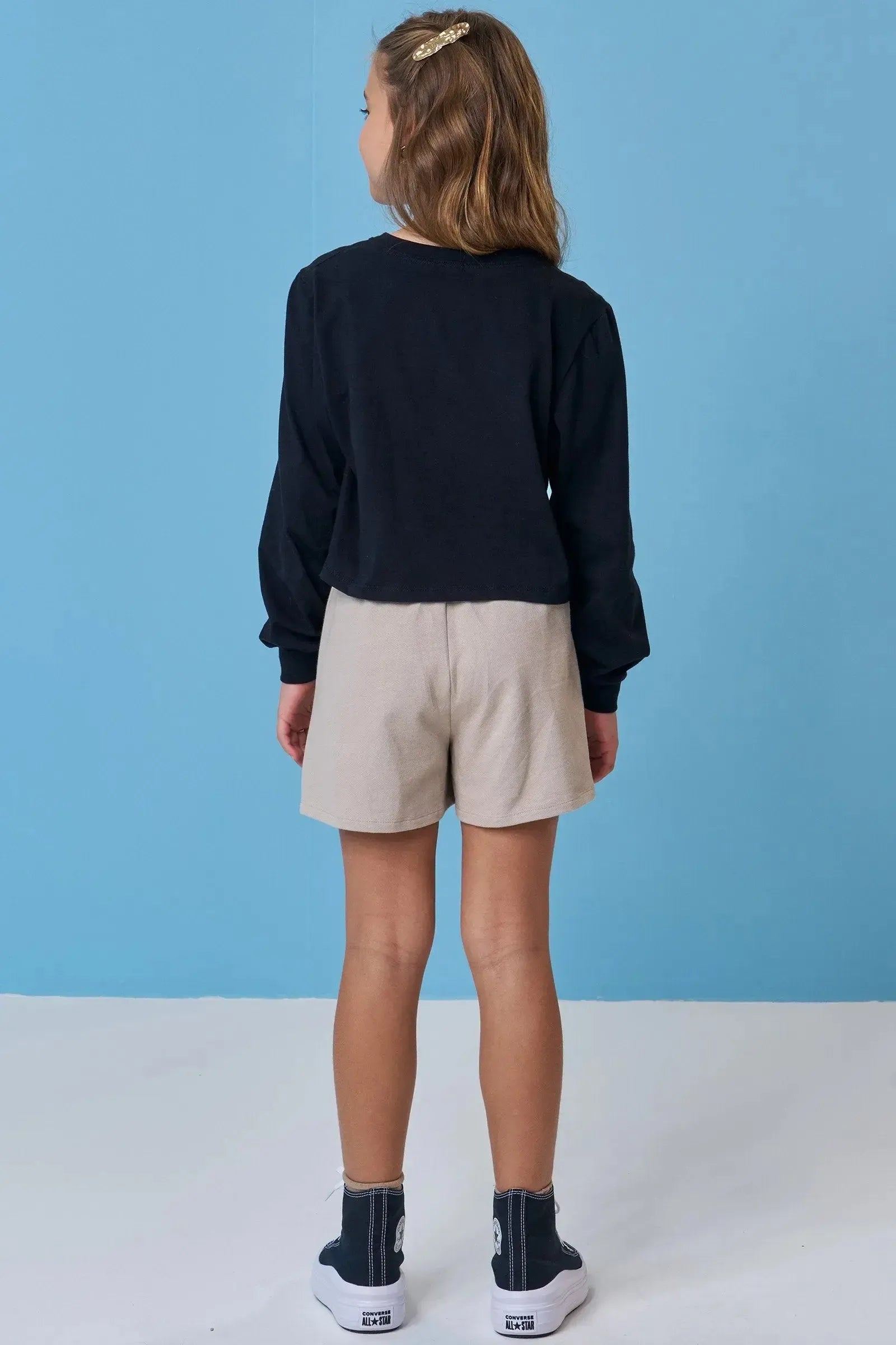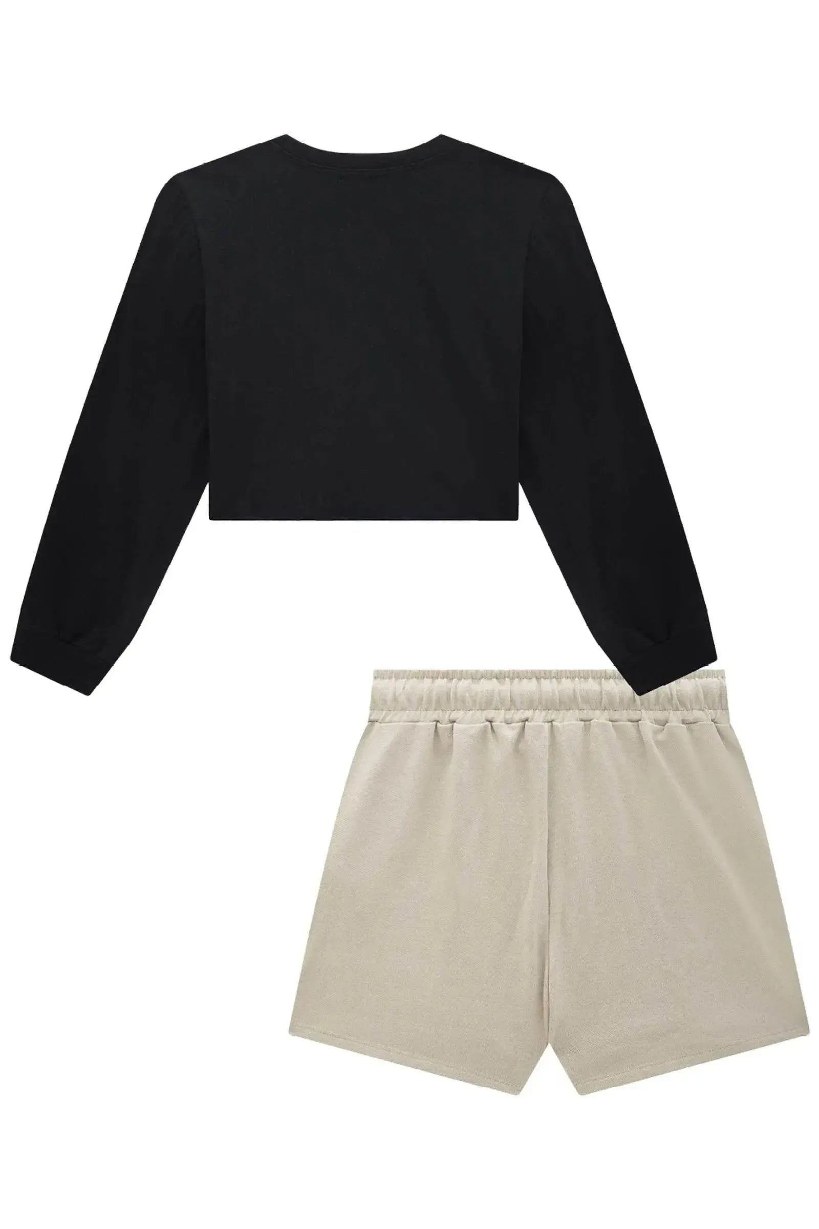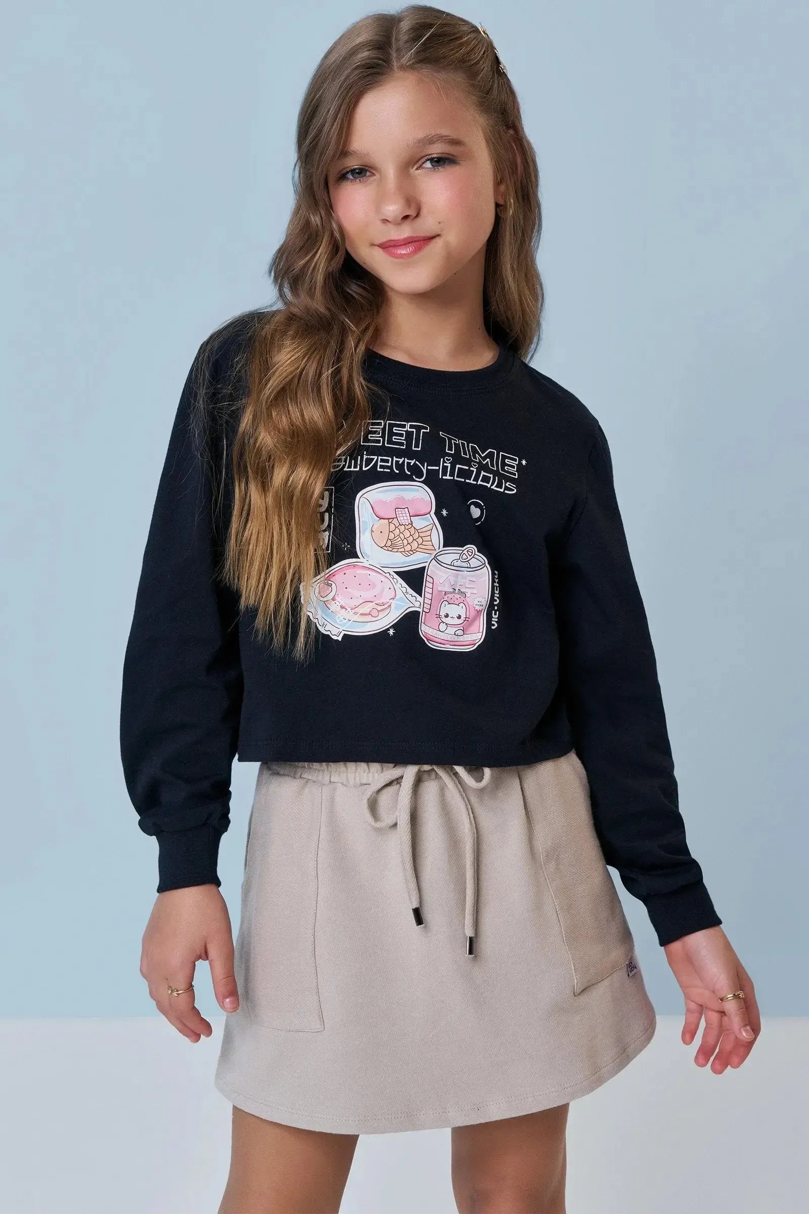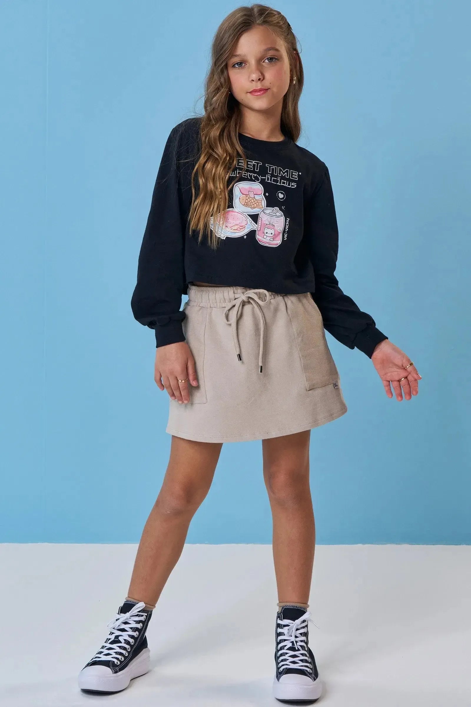 Conjunto de Blusa Boxy Over em Meia Malha e Short Saia em Moletwill 92178 Vic&Vicky Teen Menina