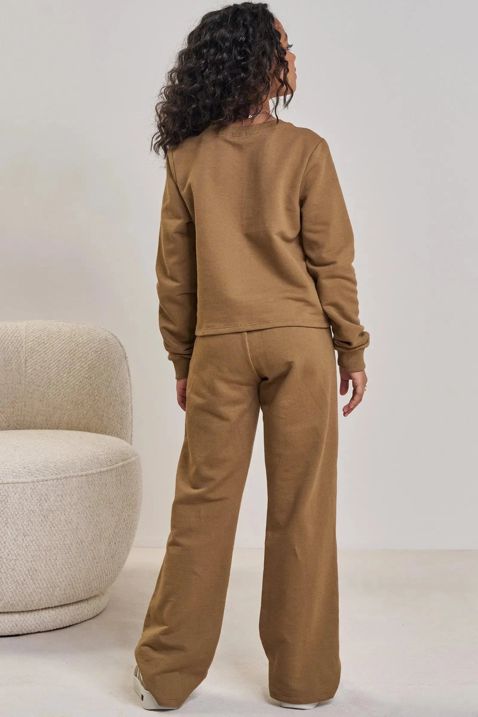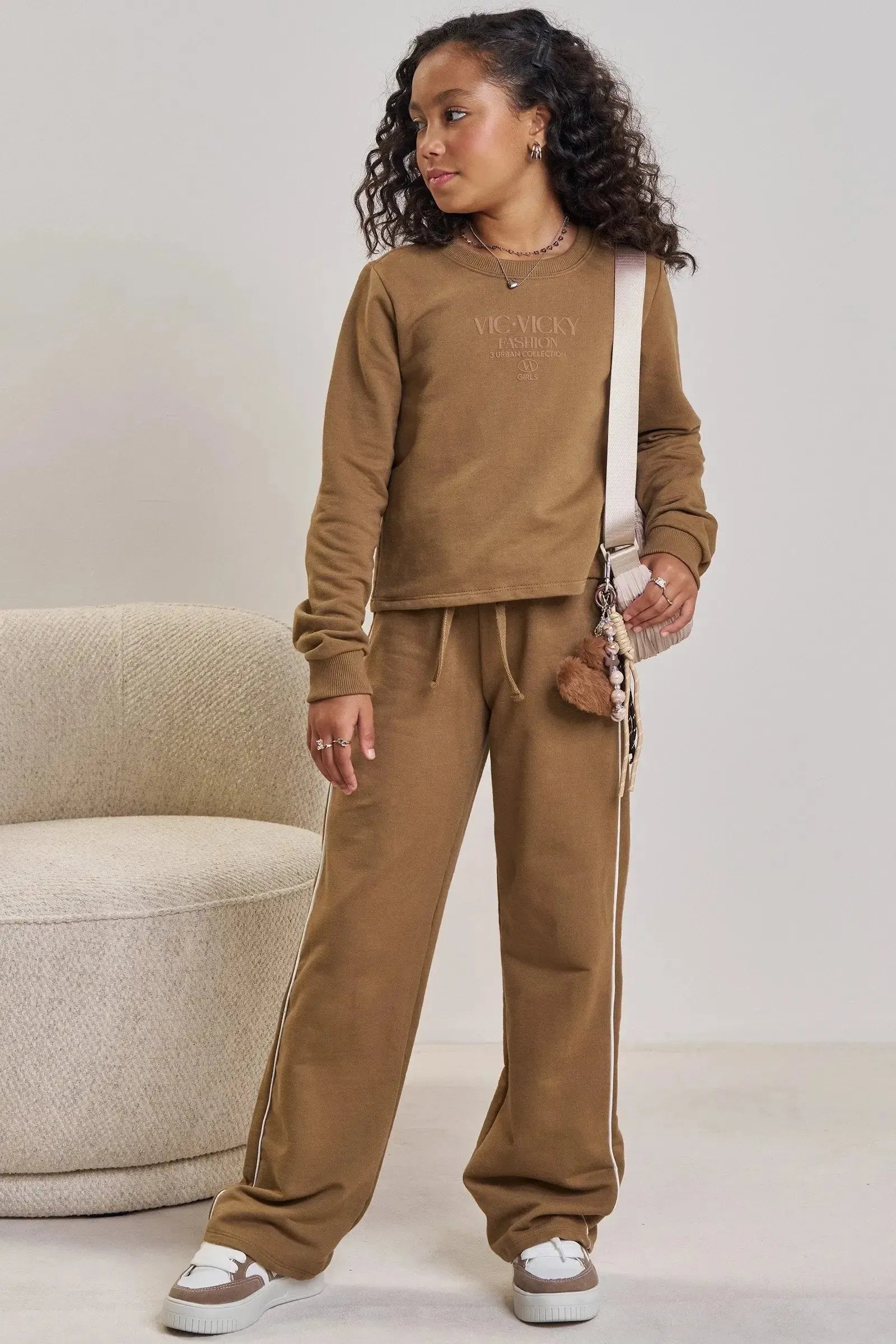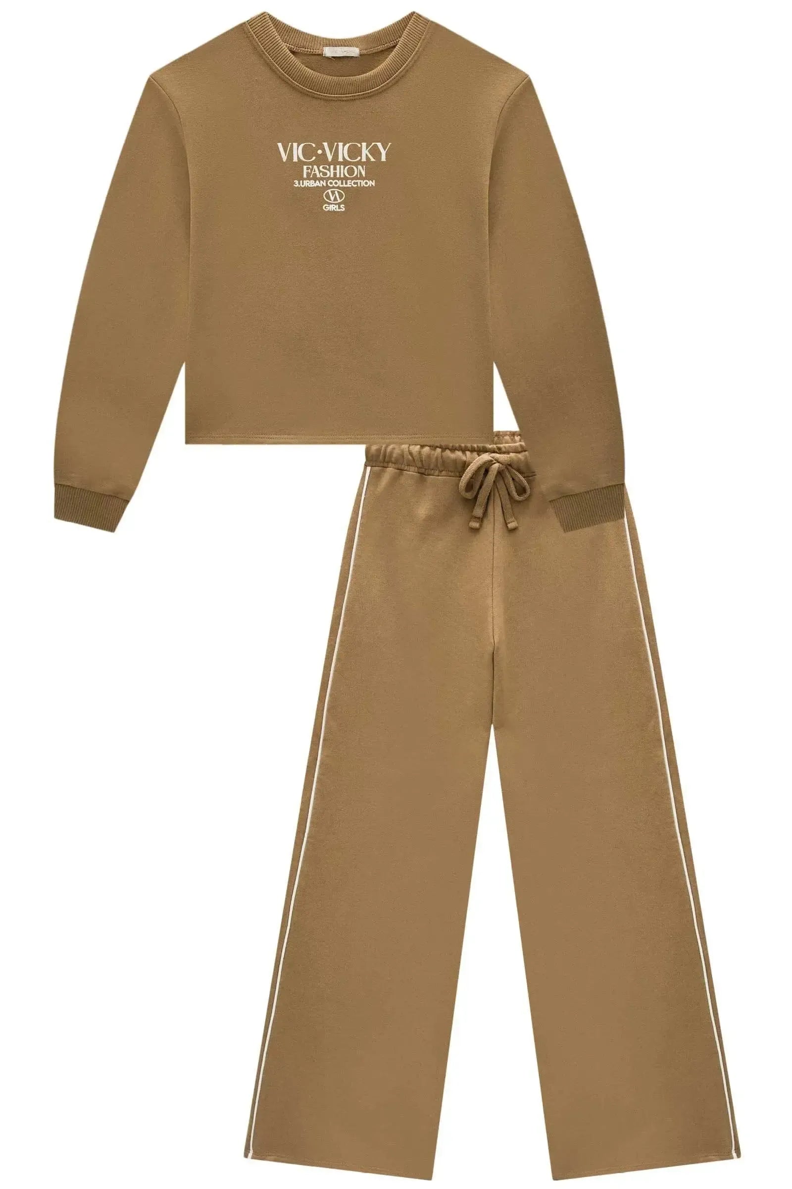 O conjunto de blusão boxy e calça wide leg em moletom sem pelúcia, é a escolha perfeita para as meninas que amam um look cheio de conforto, sem abrir mão do estilo no dia à dia! Disponível em uma cor super estilosa - bege - ela é uma peça essencial, perfeita para montar diversos looks e deixar o inverno das pequenas ainda mais estiloso! A estampa divertida, adiciona um charme especial à peça.