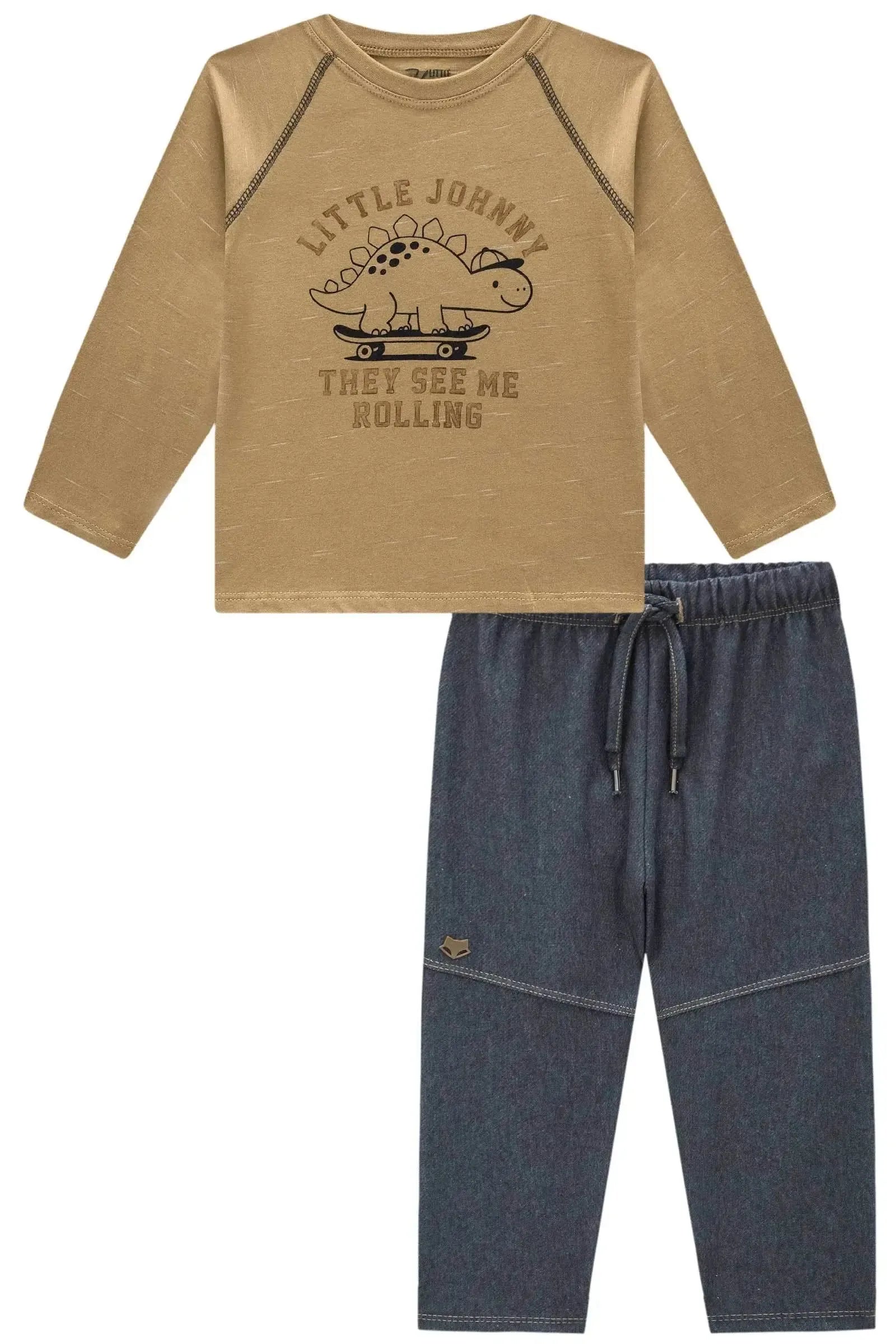 O conjunto de camiseta em malha jet e calça comfy em cotton jeans com elastano, é a escolha perfeita para os meninos que amam um look cheio de conforto, sem abrir mão do estilo no dia à dia! Disponível em uma cor super estilosa - bege - ela é uma peça essencial, perfeita para montar diversos looks e deixar o inverno dos pequenos ainda mais estiloso! A estampa divertida, adiciona um charme especial à peça.