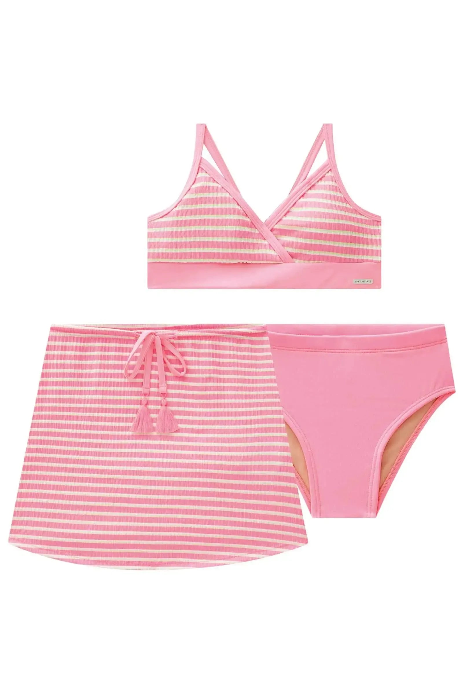 Trio de Biquini Tradicional em Malha UV 50+ e Saia em Malha Texturizada 88001 Vic&Vicky Teen Menina