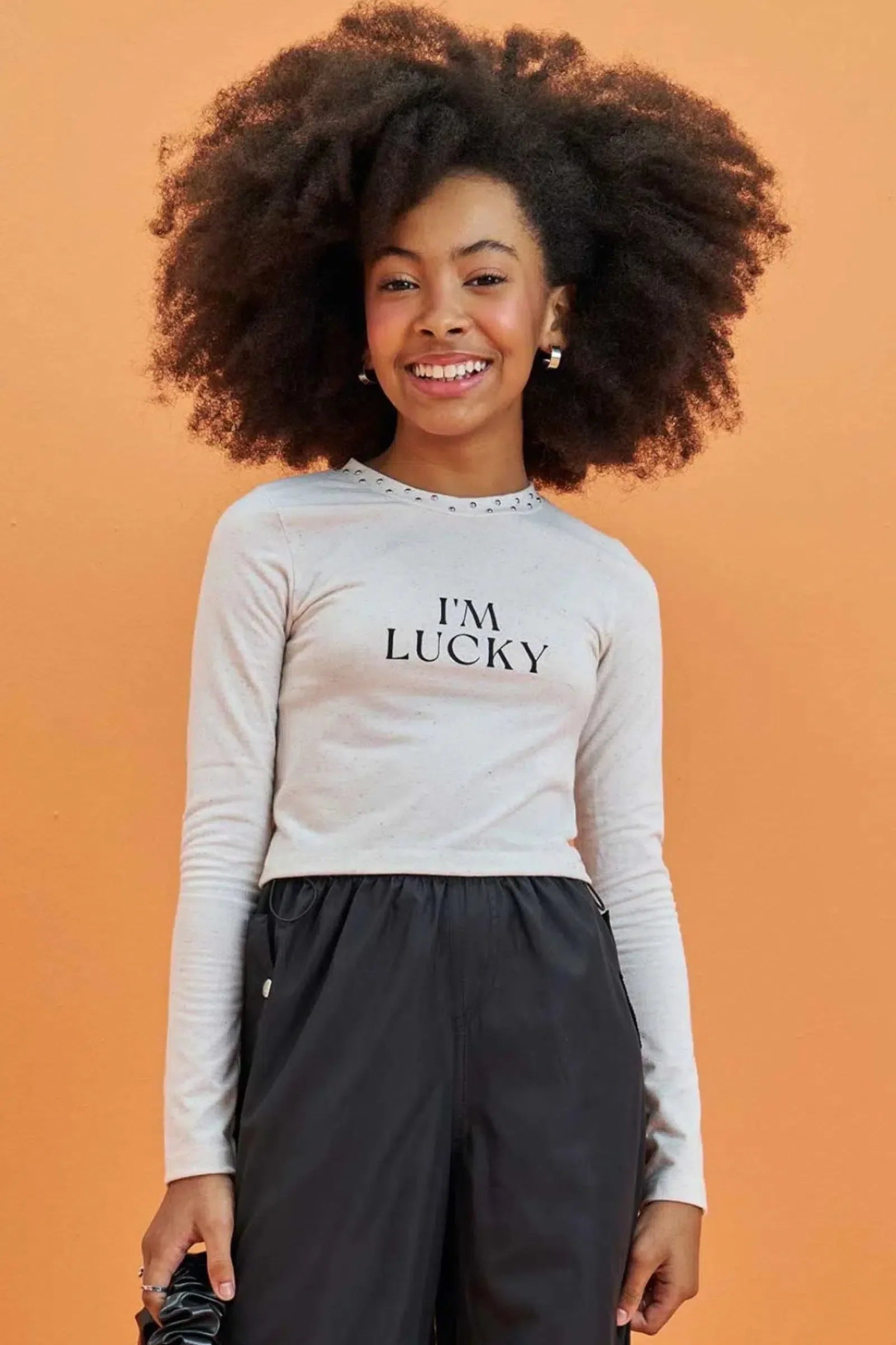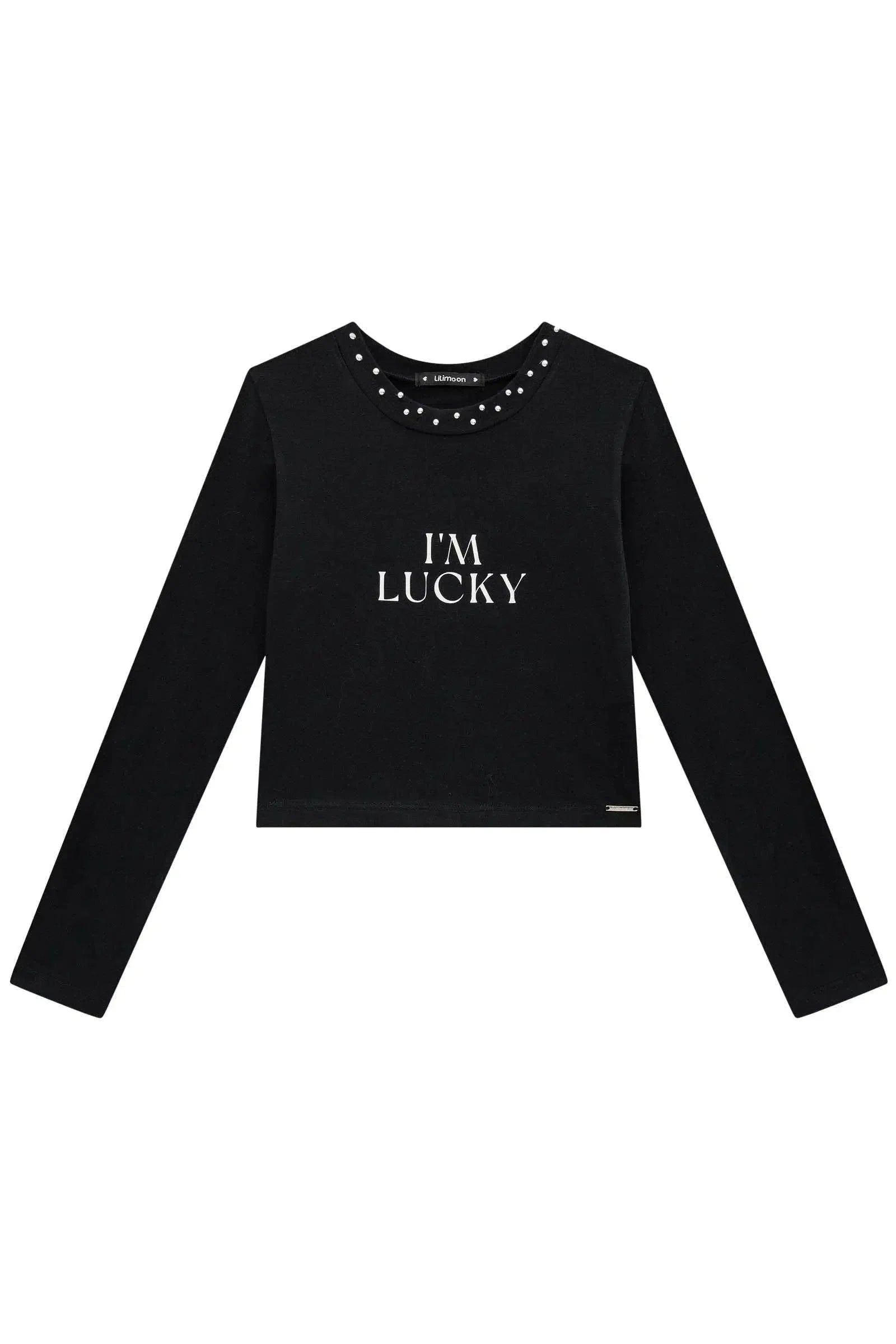 Blusa Cropped Teen Feminina Em Cotton Com Aplicação De Strass Lilimoon A blusa cropped em cotton com aplicação de strass e frase "I'm Lucky" é a escolha perfeita para as adolescentes que buscam um look moderno e confortável, com um toque de otimismo. Com seu caimento ajustado e detalhes charmosos, ela é perfeita para criar combinações estilosas e arrasar em qualquer ocasião. Confeccionada em cotton de alta qualidade, garante o máximo de conforto e durabilidade. Disponível em duas cores clássicas, essa blusa é um must-have para o seu guarda-roupa! Combine com jeans, shorts ou saia e crie looks incríveis para o dia a dia ou para aquela festa especial. Não perca a chance de ter essa peça única e exclusiva e espalhar positividade por aí!