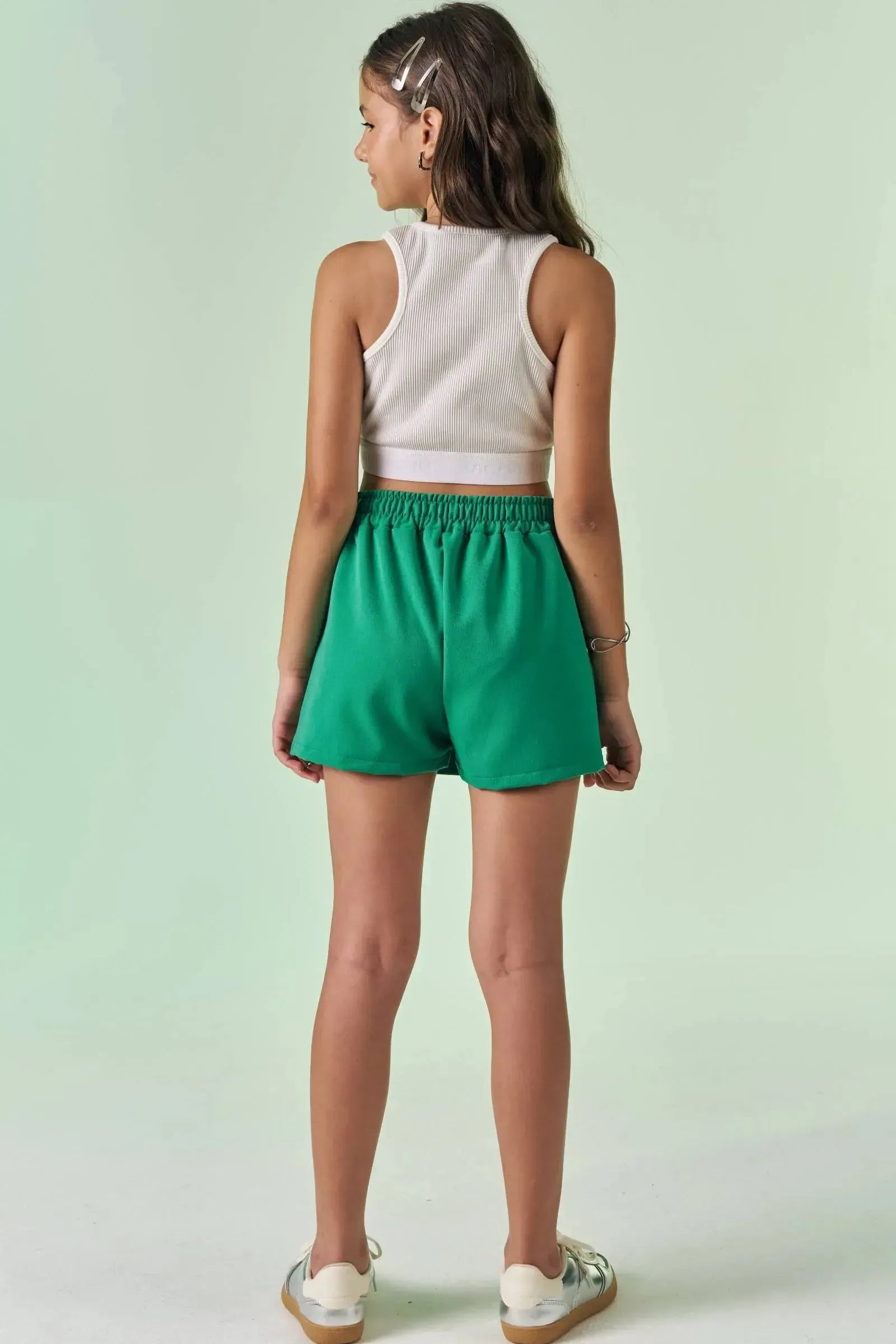 O short saia em blend de viscose sarjada, é perfeito para as meninas que amam um look cheio de estilo e personalidade! Disponível em duas cores super estilosas - verde e cinza - ele oferece um toque super macio e confortável, ideal para o dia a dia e diversas ocasiões.
