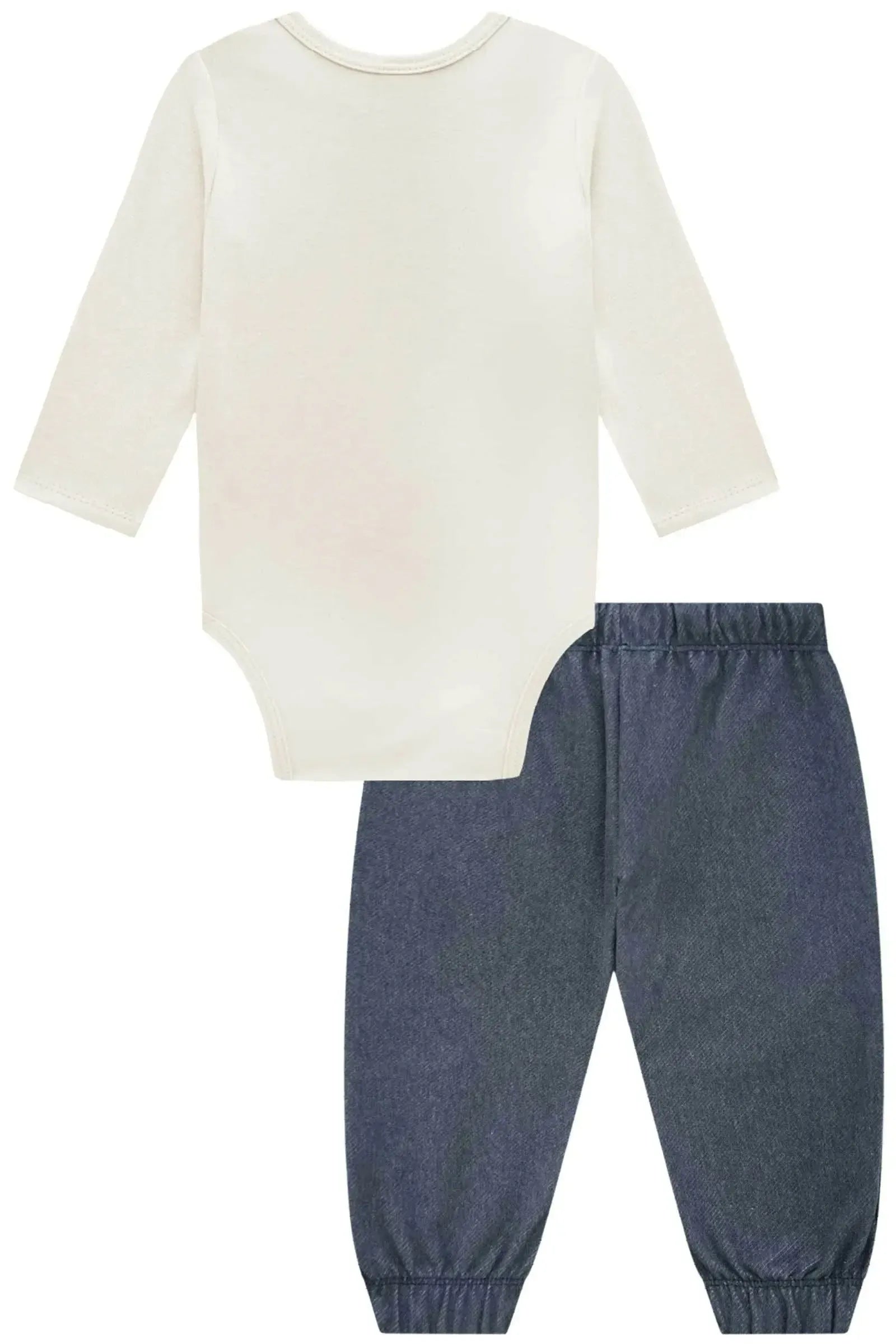 Conjunto de Body em Suedine e Calça Jogger em Cotton Jeans com Elastano 92291 Johnny Fox Bebê Menino