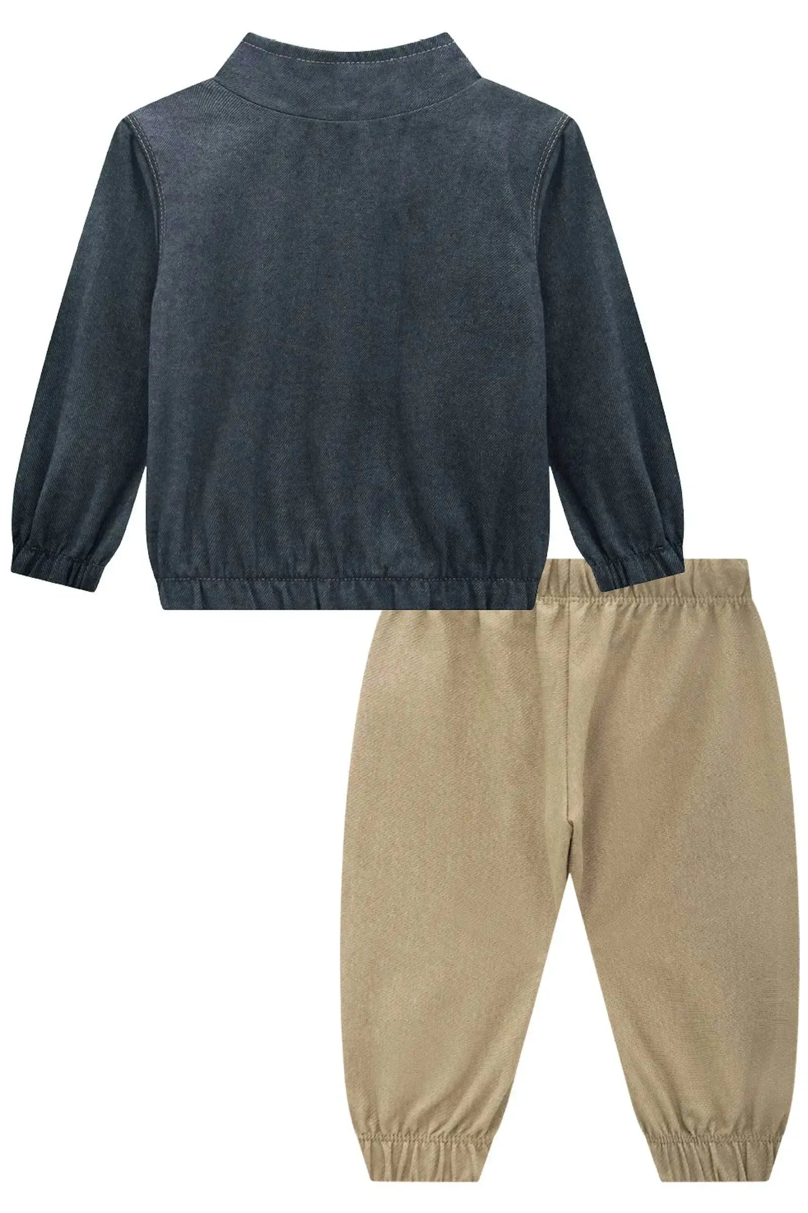 O conjunto de jaqueta em flanela melange e calça jogger em cotton jeans com elastano, é a escolha perfeita para os meninos que amam um look cheio de conforto, sem abrir mão do estilo no dia à dia! Disponível em uma cor super estilosa - caqui - ela é uma peça essencial, perfeita para montar diversos looks e deixar o inverno dos pequenos ainda mais estiloso!