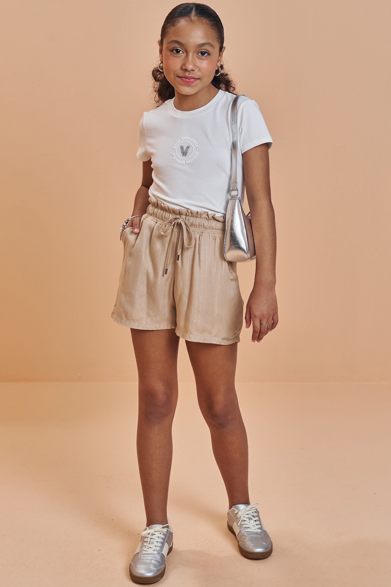 Conjunto de Blusa Boxy em Cotton e Shorts em Visco Shine 93476 Vic&Vicky Teen Menina