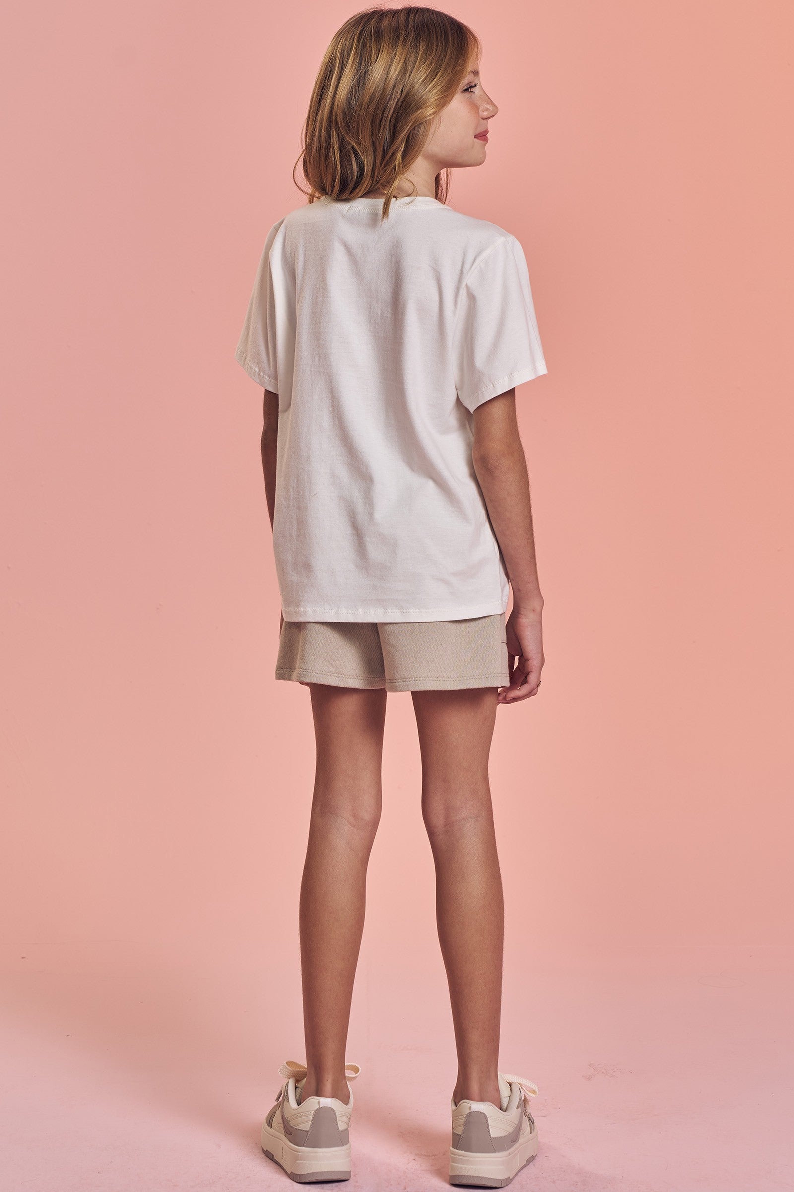 Conjunto de Blusa Comfy em Meia Malha e Shorts em Moletom sem Pelúcia 92763 Lilimoon Teen Menina