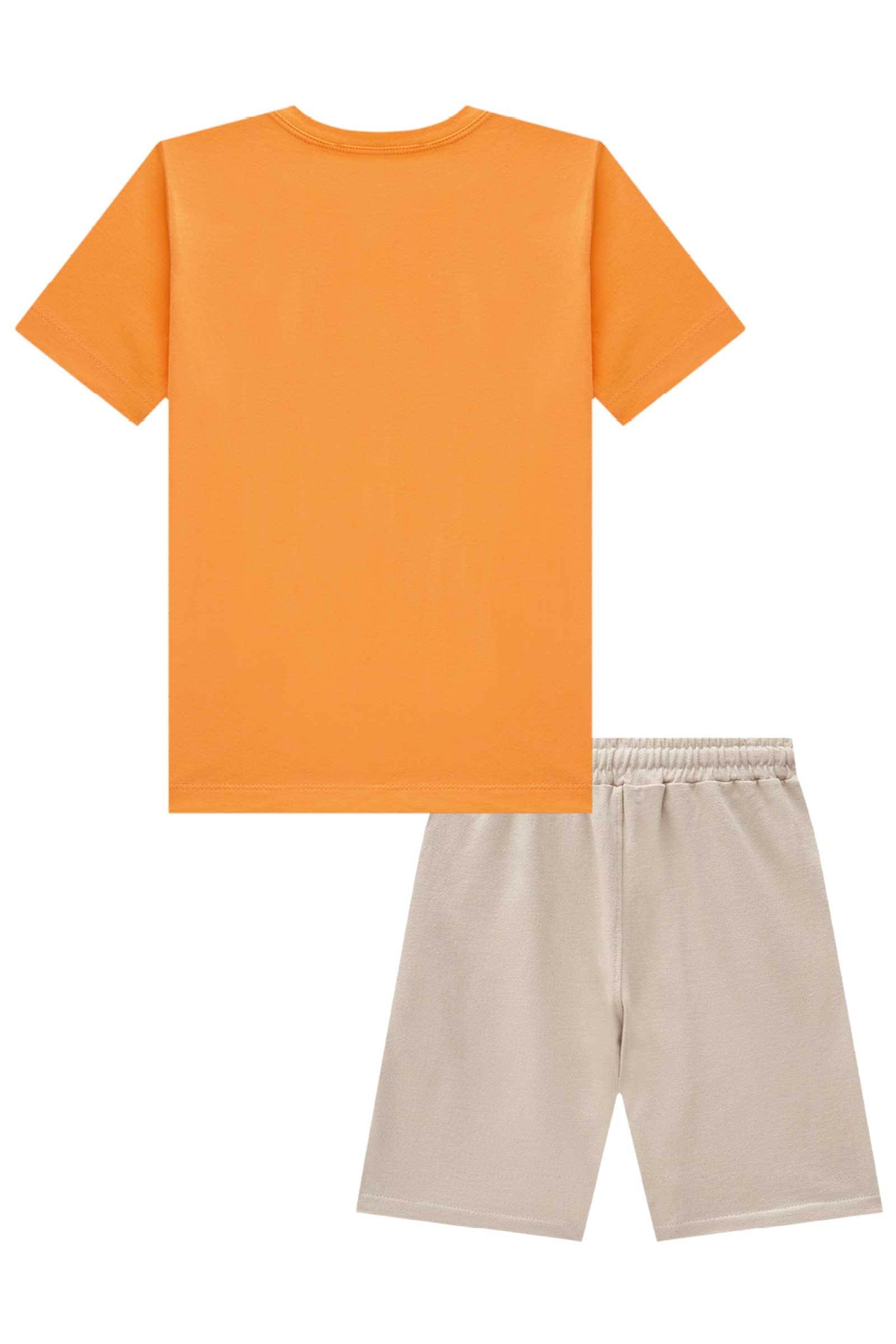 O conjunto de camiseta em meia malha e bermuda em moletwill com elastano é a escolha ideal para meninos que buscam um visual moderno, confortável e que transmita atitude. Perfeito para o dia a dia, passeios ou momentos de lazer. Disponível em duas cores super estilosas - cinza e laranja - este conjunto proporciona a combinação perfeita de estilo e conforto.