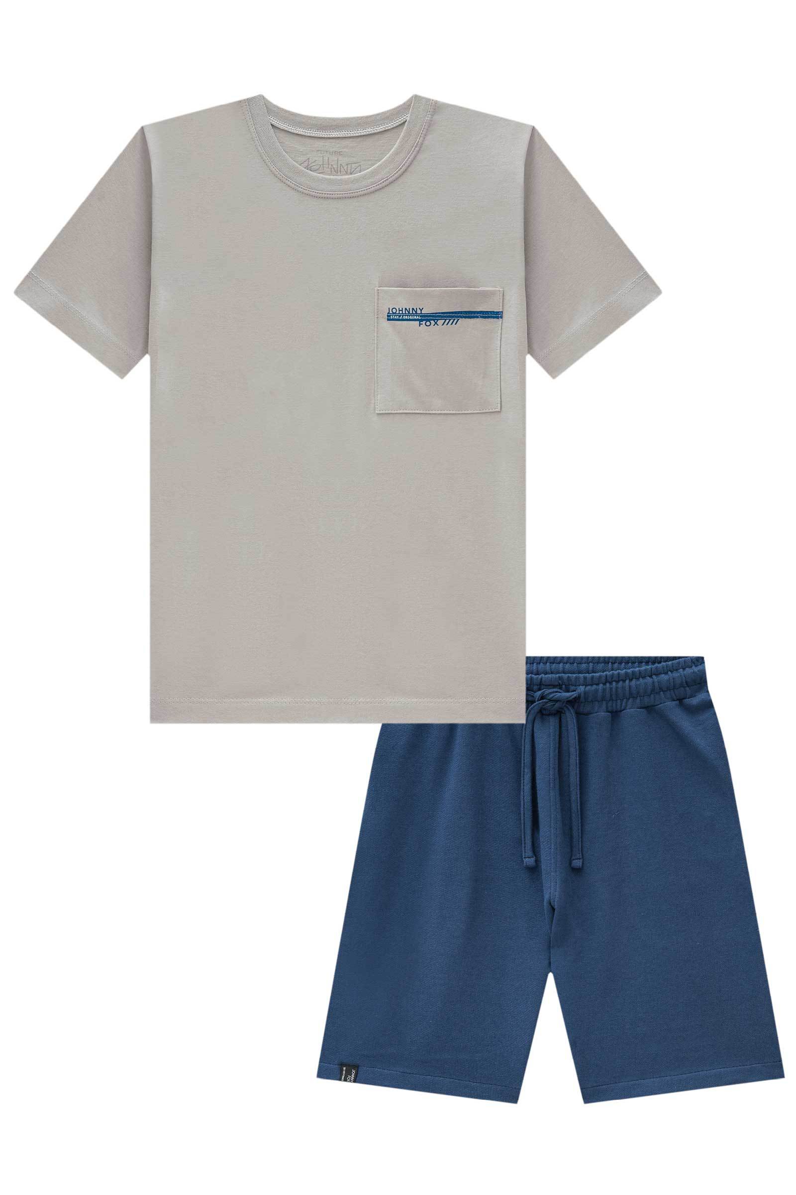 Conjunto de Camiseta em Meia Malha e Bermuda em Moletwill com Elastano 85063 Johnny Fox Teen Menino