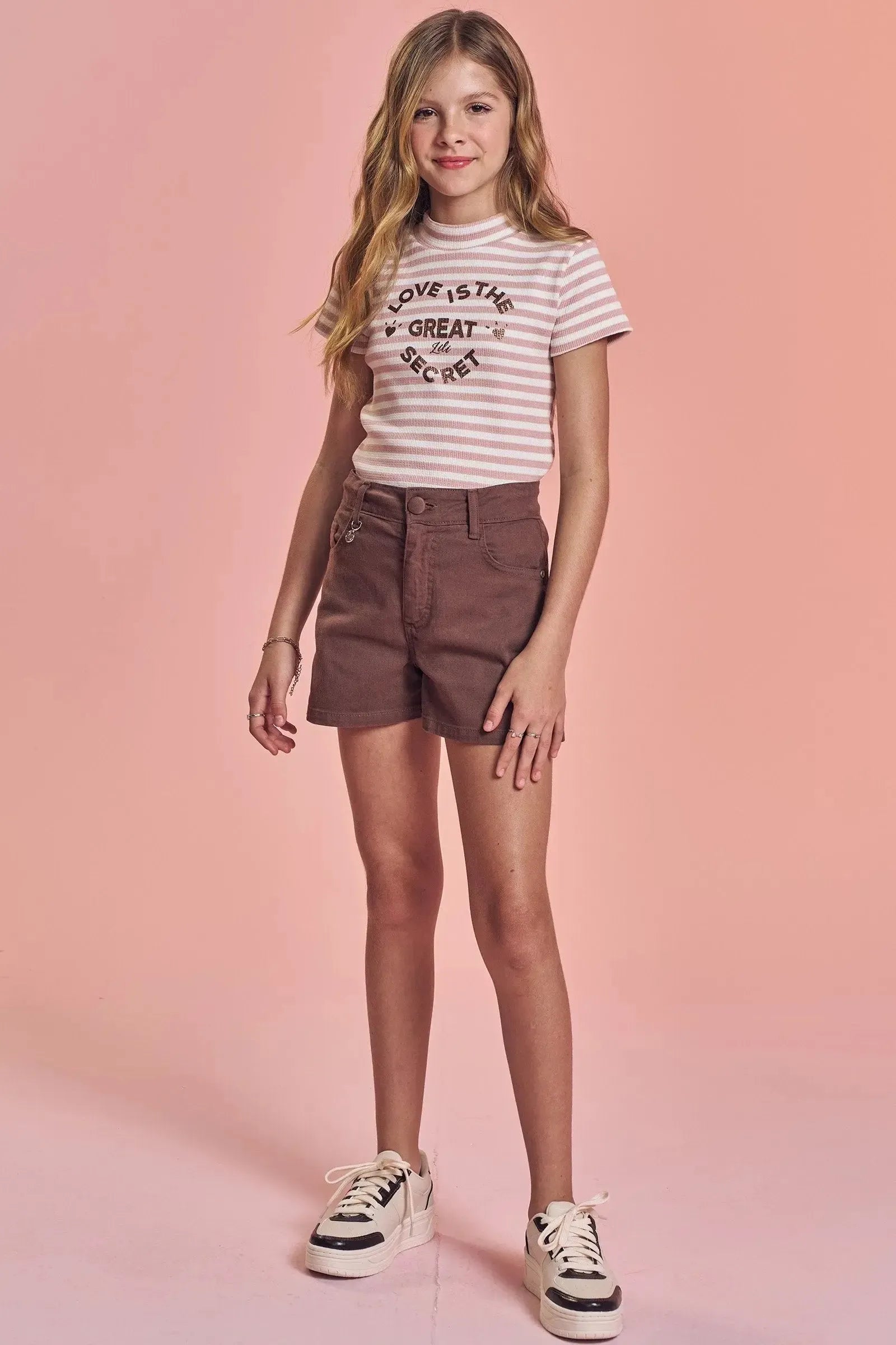Com modelagem confortável e gola ajustada, a blusa é ideal para usar com shorts, saias ou calças, compondo looks casuais e cheios de charme, é uma peça essencial para o guarda-roupa das meninas que gostam de unir tendência e conforto!