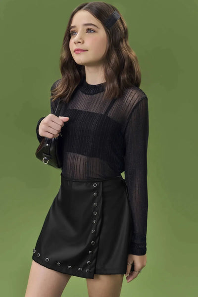 Conjunto de Blusa Cropped e Saia com Shorts Embutido...