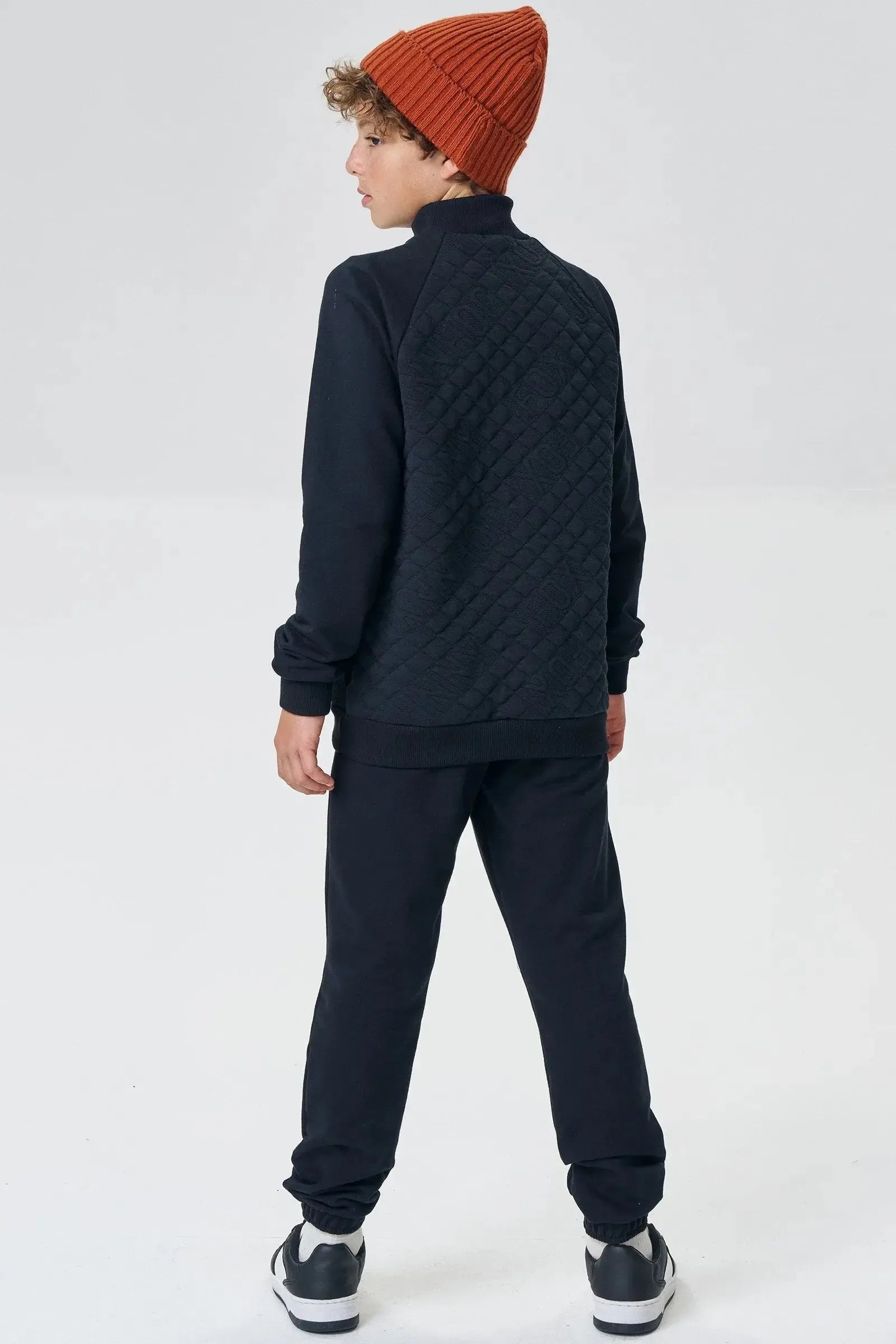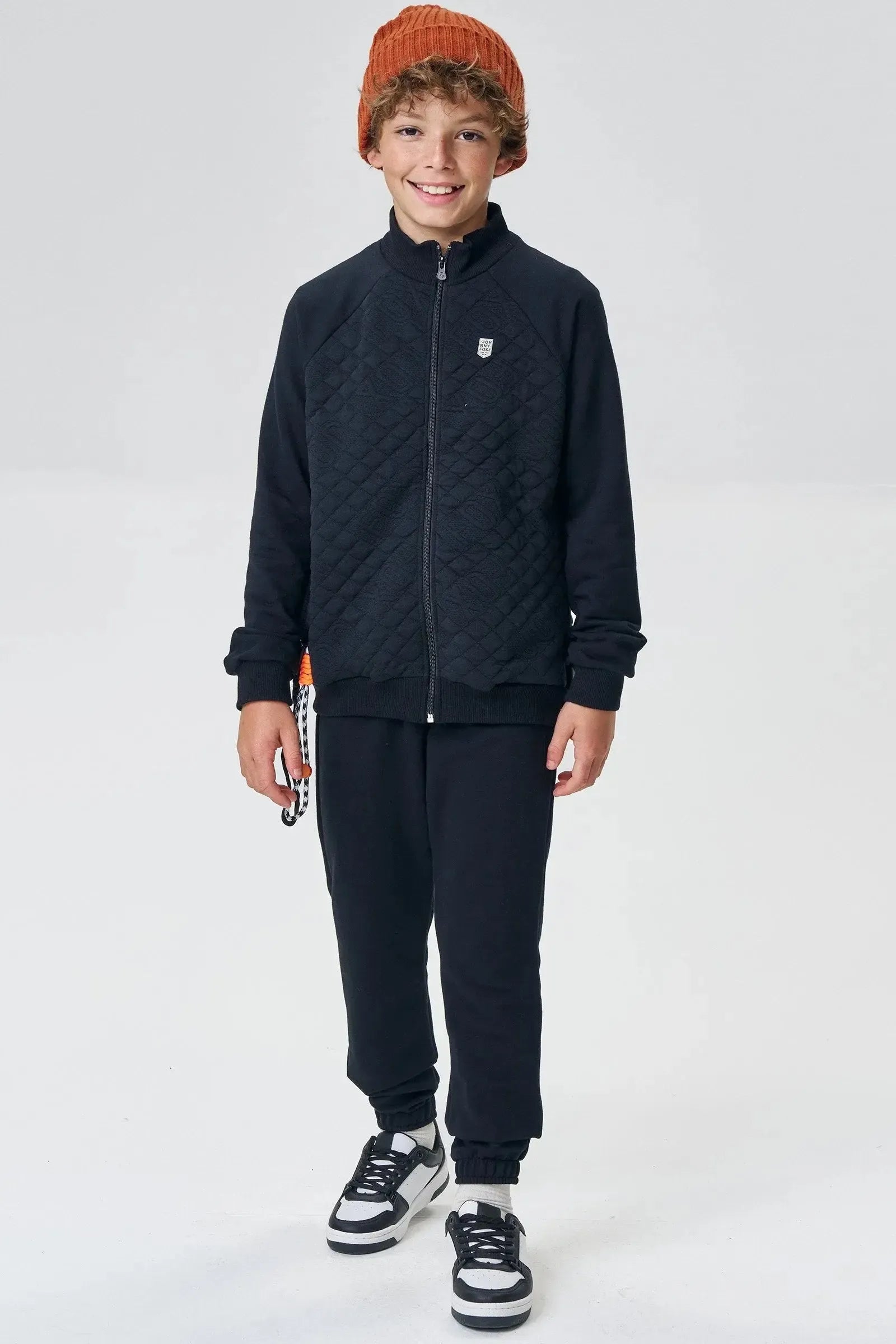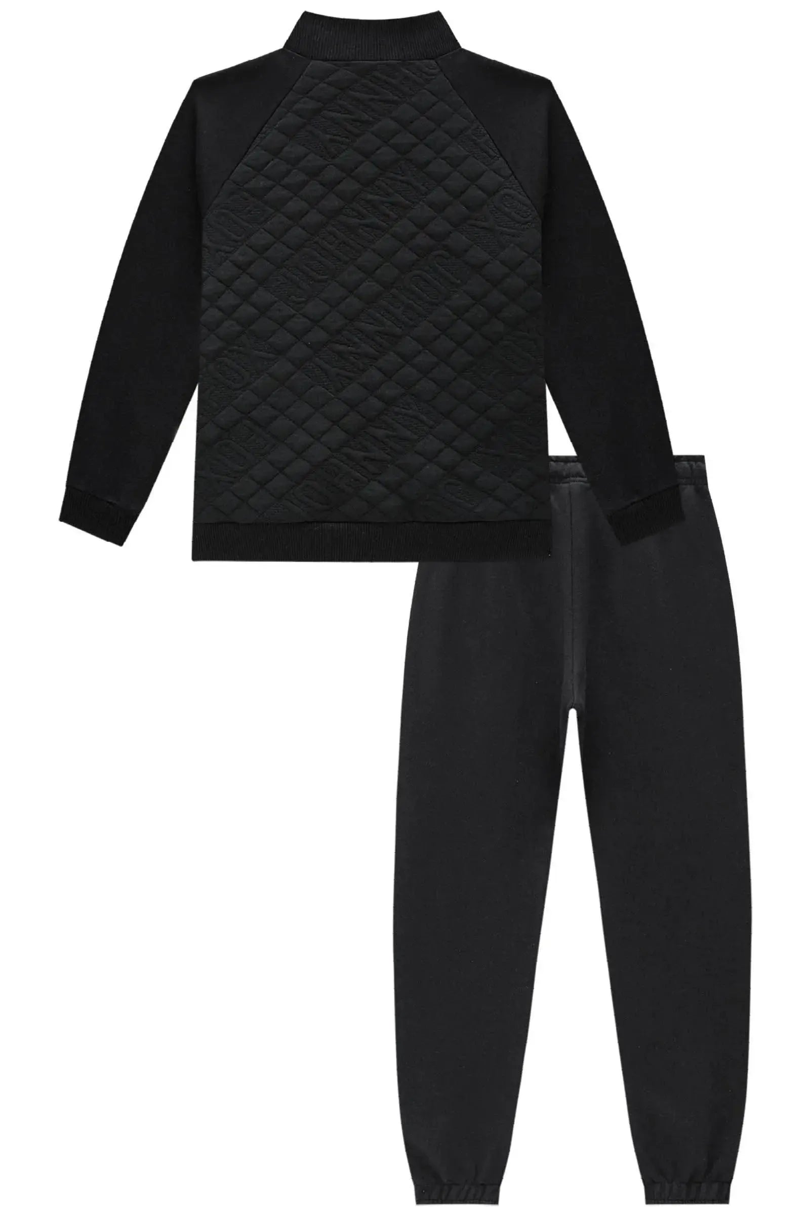 O conjunto de jaqueta em moletom sem pelúcia em malha matelada e calça em moletom sem pelúcia, é a escolha perfeita para os meninos que amam um look cheio de conforto, sem abrir mão do estilo no dia à dia! Disponível em uma cor super estilosa - preto - ela é uma peça essencial, perfeita para montar diversos looks e deixar o inverno dos pequenos ainda mais estiloso!
