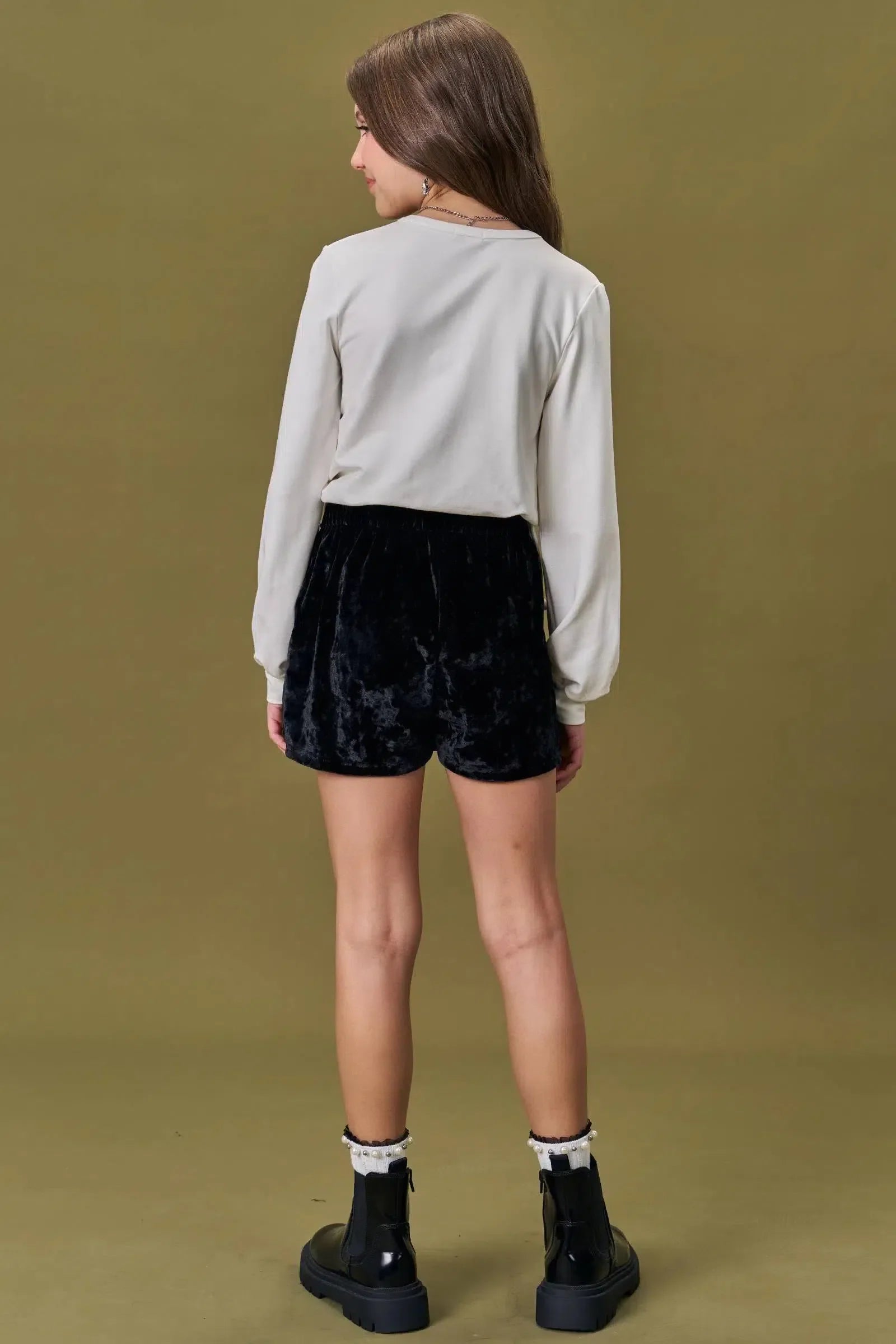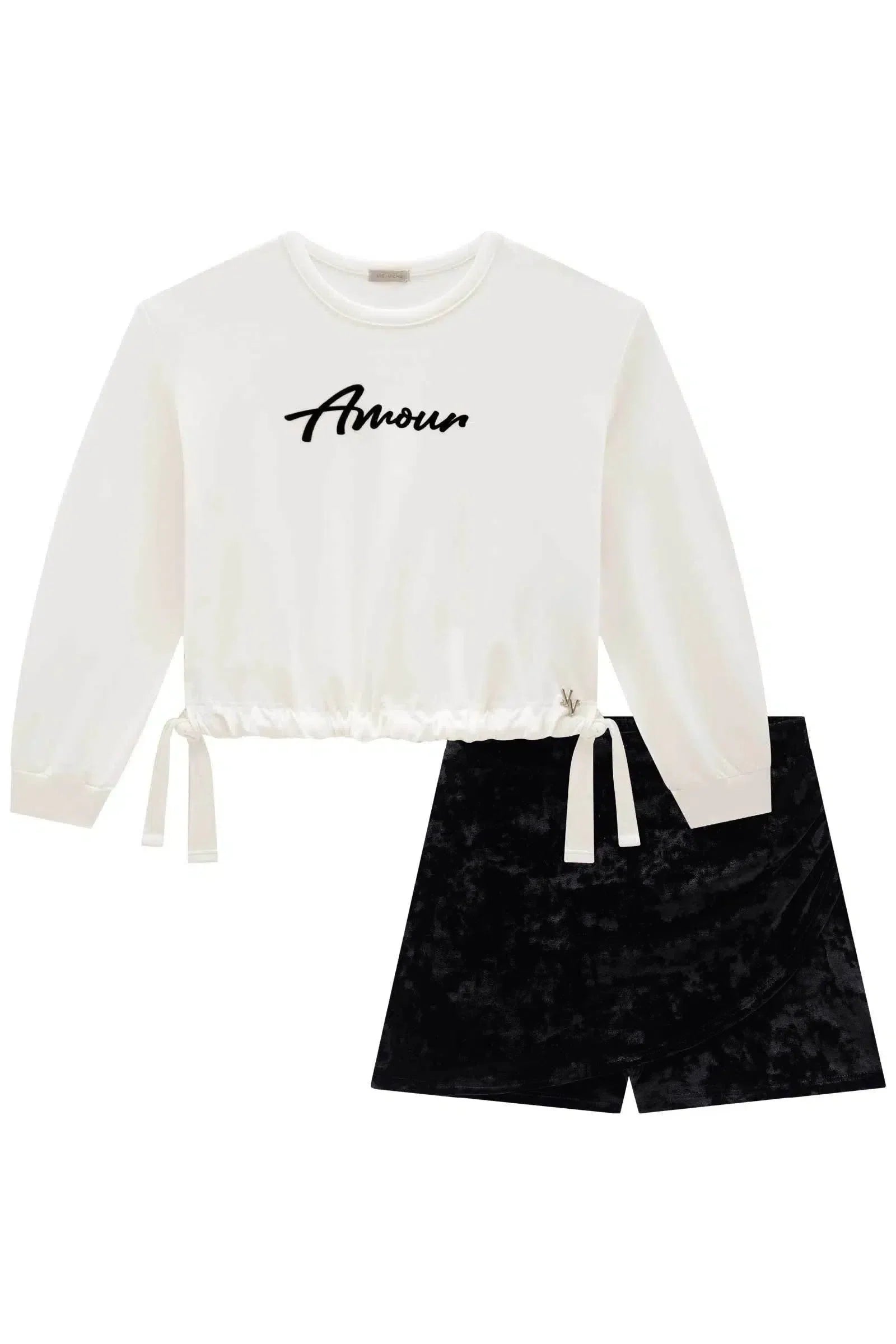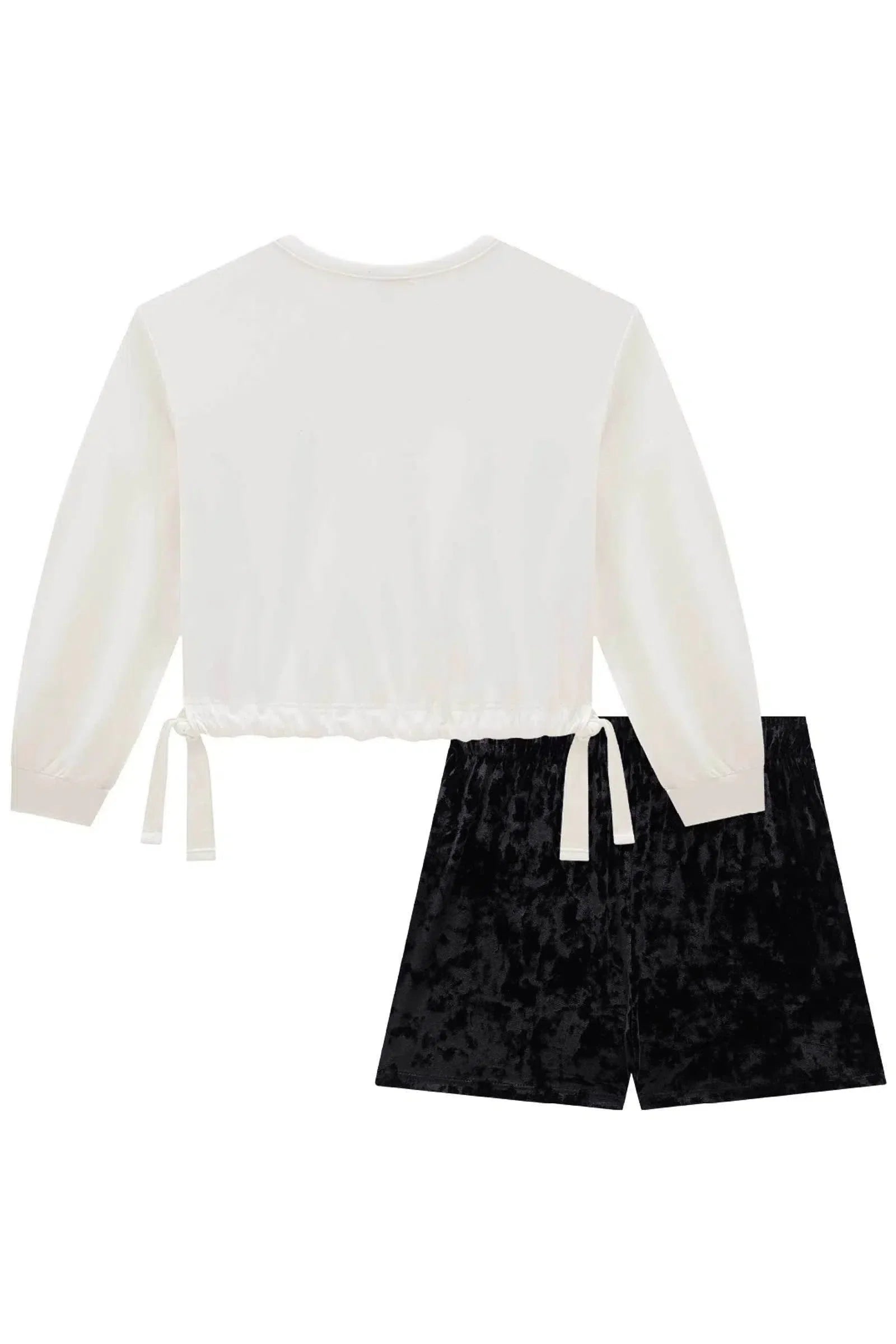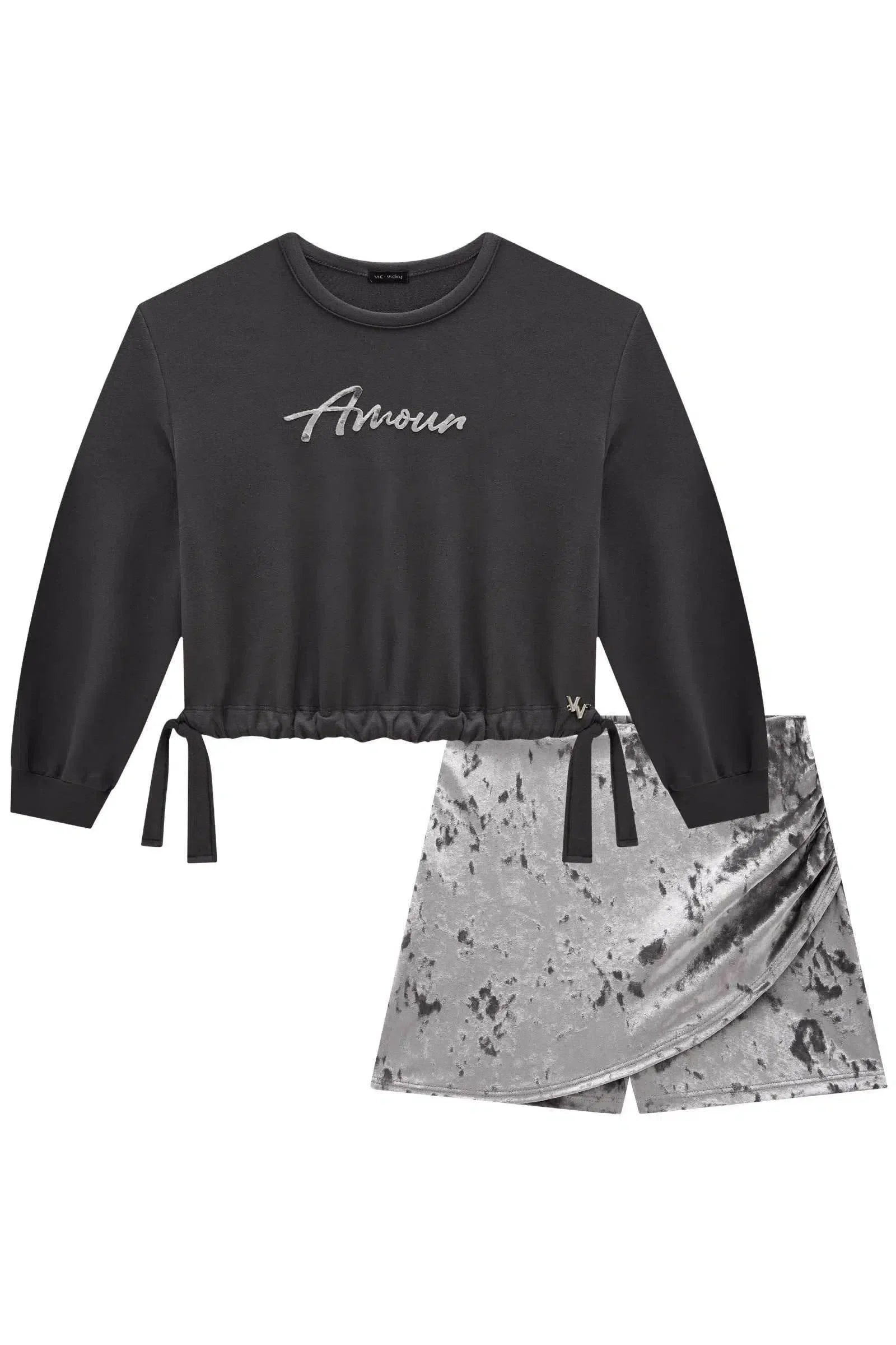 Conjunto Blusa Boxy em Molevisco e Short Saia em Veludo Royal Teen Feminina Vic&Vicky