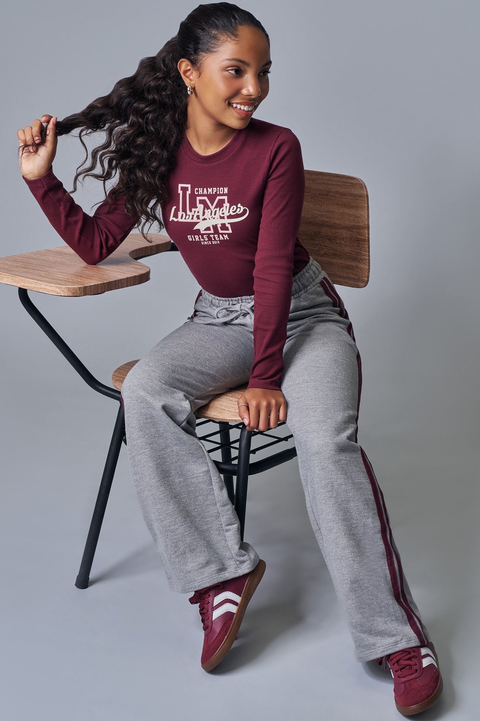 O conjunto de blusa em canelado liz e calça wide leg em moletom sem pelúcia, é a escolha perfeita para as meninas que amam um look cheio de conforto, sem abrir mão do estilo no dia à dia! Disponível em uma cor super estilosa - bordô - ela é uma peça essencial, perfeita para montar diversos looks e deixar o inverno das pequenas ainda mais estiloso! A estampa divertida, adiciona um charme especial à peça.