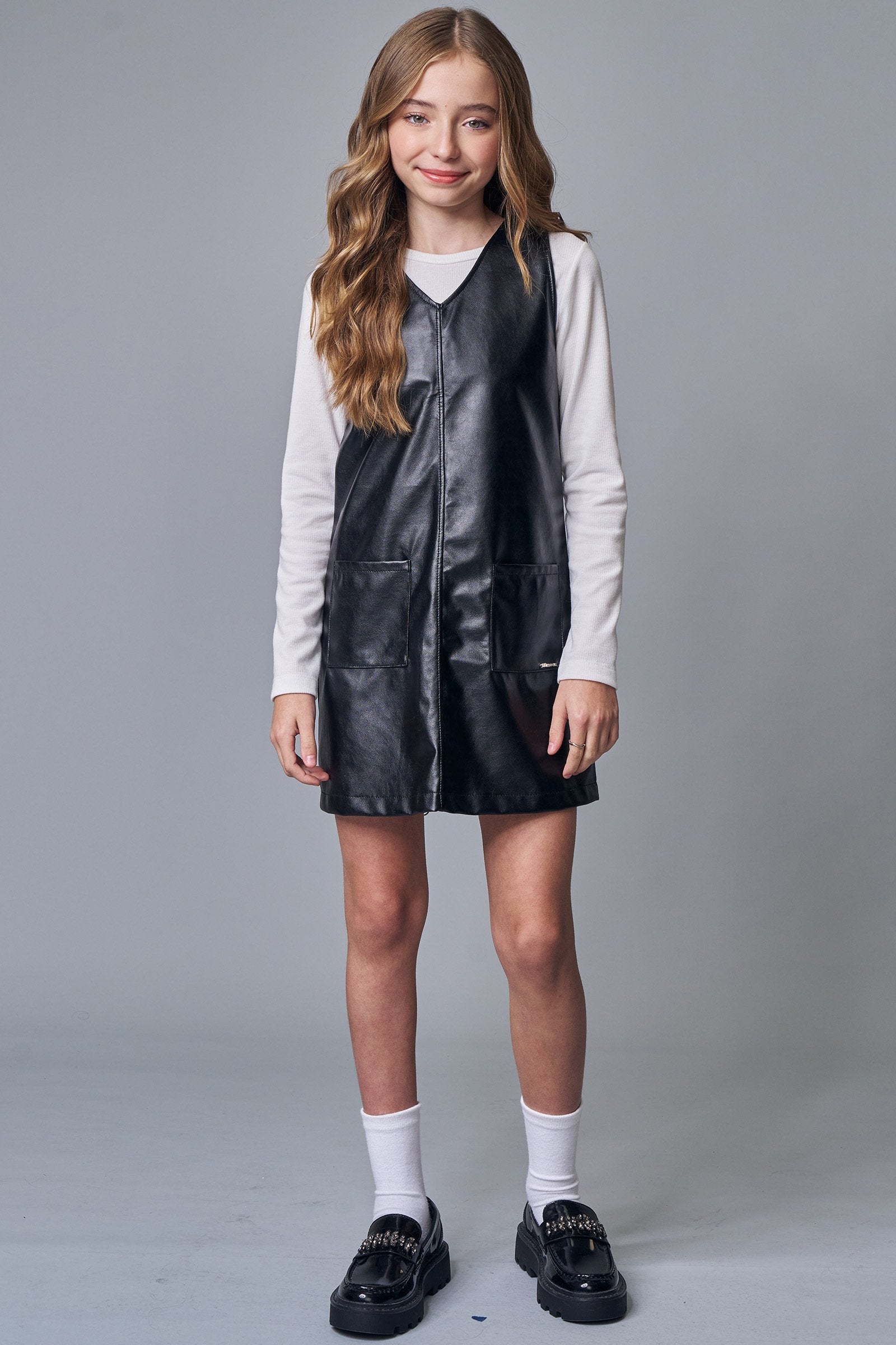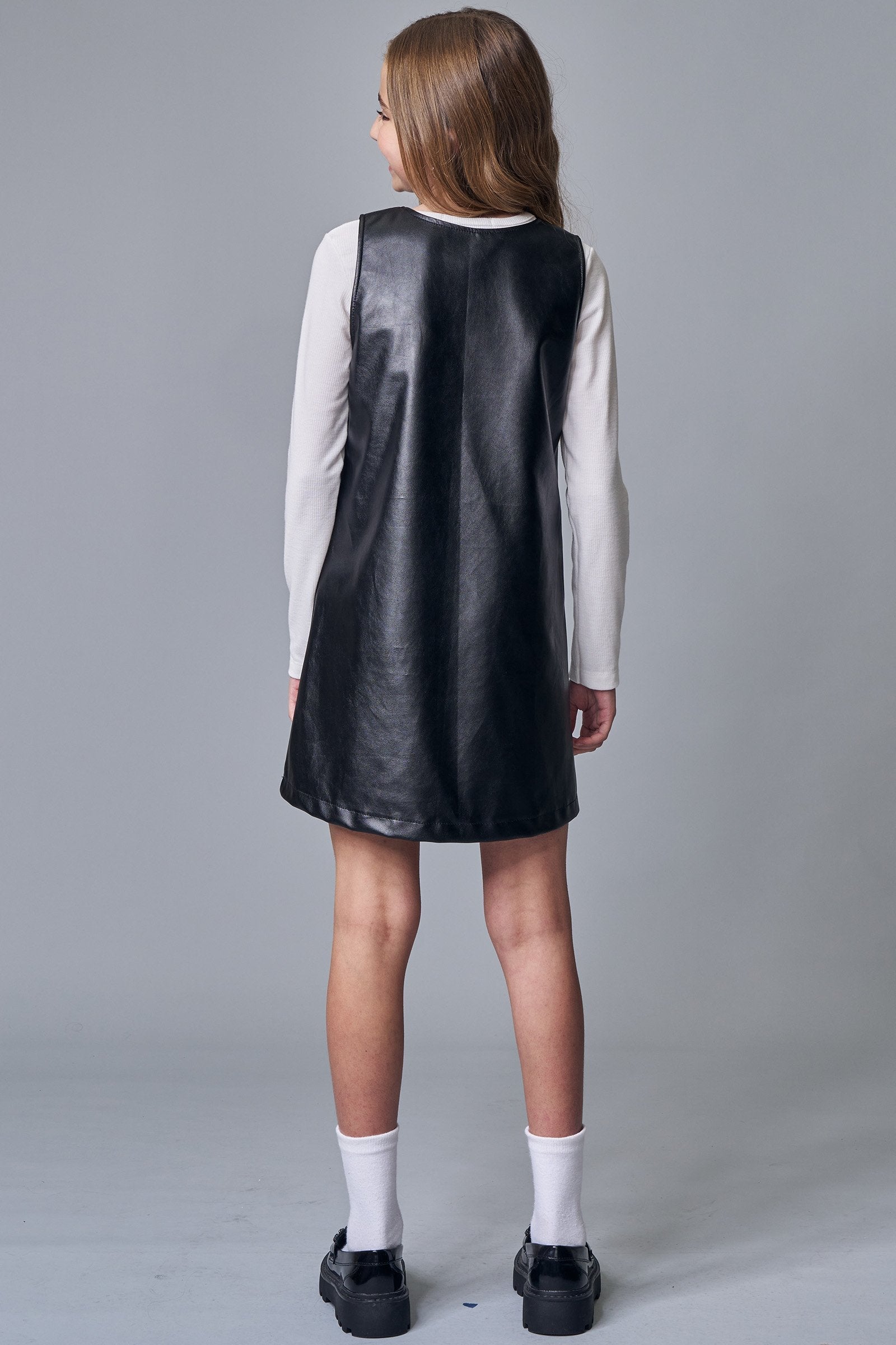Conjunto de Blusa em Canelado Liz e Vestido em Couro Sintético 89511 Lilimoon Teen Menina