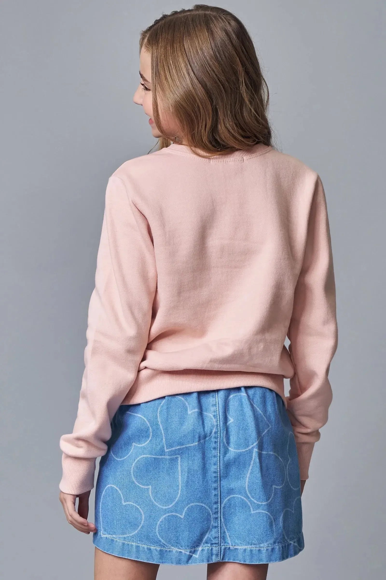 O blusão em moletom com pelúcia, é a escolha perfeita para as meninas que amam um look cheio de conforto, sem abrir mão do estilo no dia à dia! Disponível em uma cor super estilosa - nude - ela é uma peça essencial, perfeita para montar diversos looks e deixar o inverno das pequenas ainda mais estiloso! A estampa divertida, adiciona um charme especial à peça.