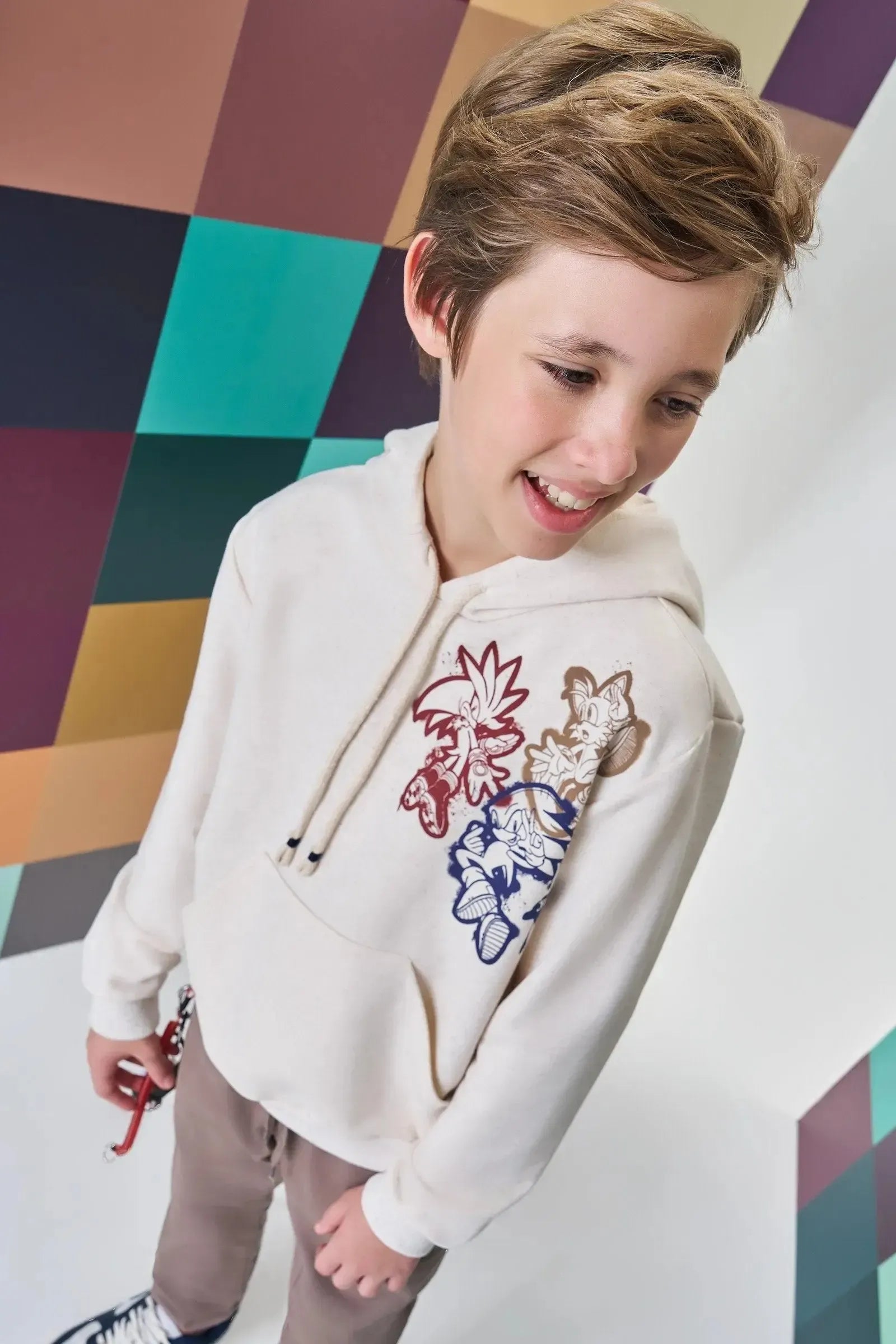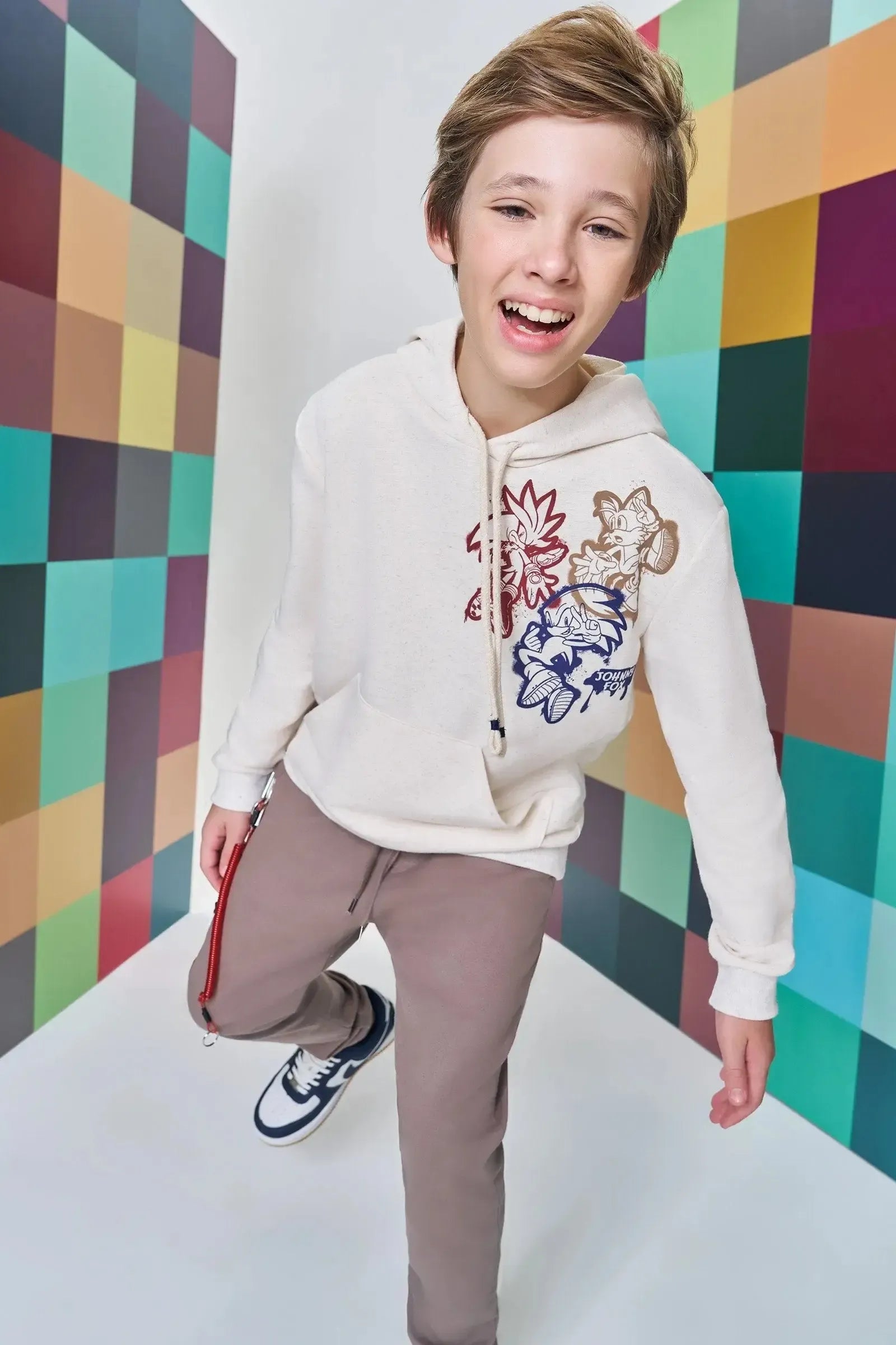 O blusão em moletom sem pelúcia, é a escolha perfeita para os meninos que amam um look cheio de conforto, sem abrir mão do estilo no dia à dia! Disponível em uma cor super estilosa - bege - ela é uma peça essencial, perfeita para montar diversos looks e deixar o inverno dos pequenos ainda mais estiloso! A estampa divertida, adiciona um charme especial à peça.