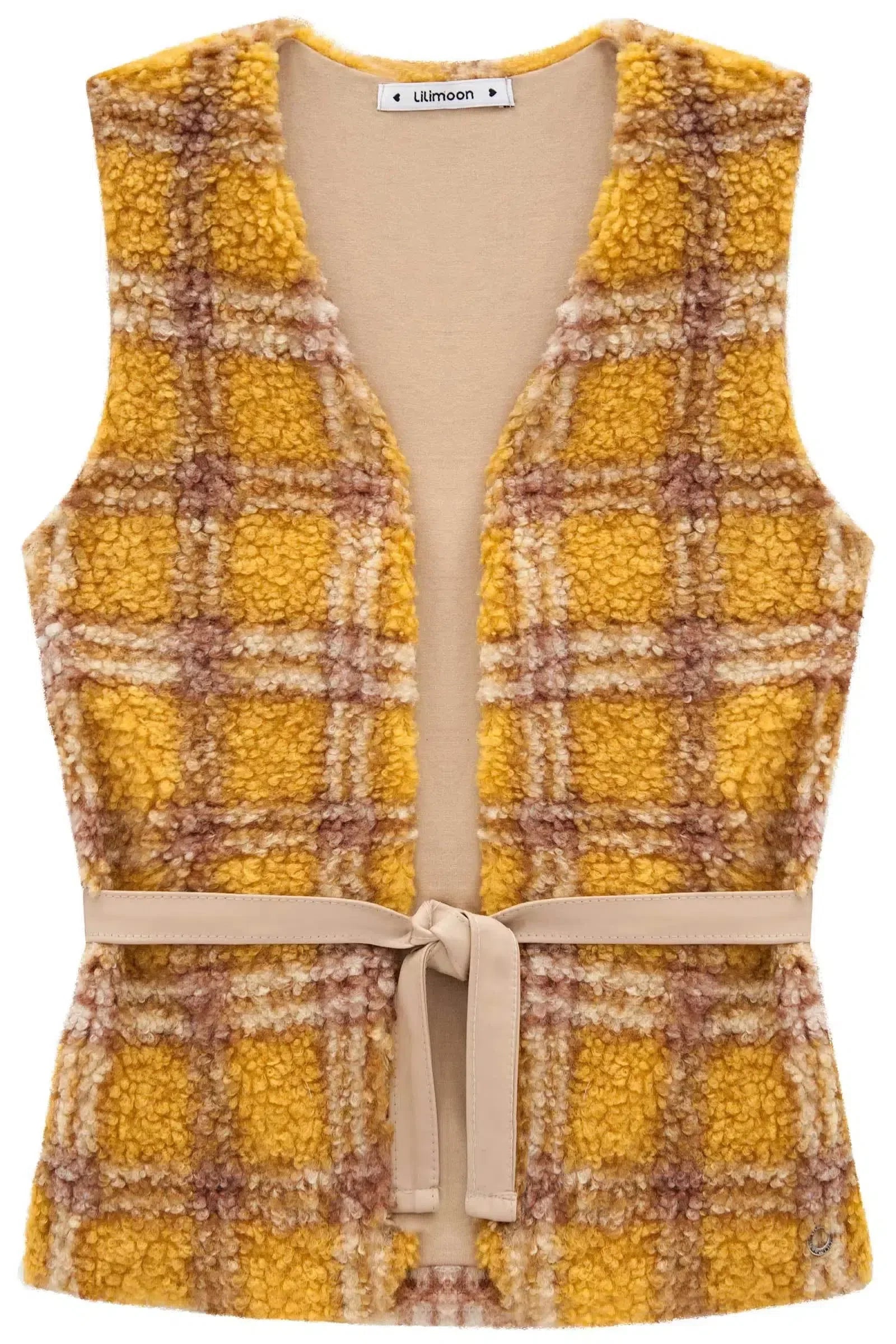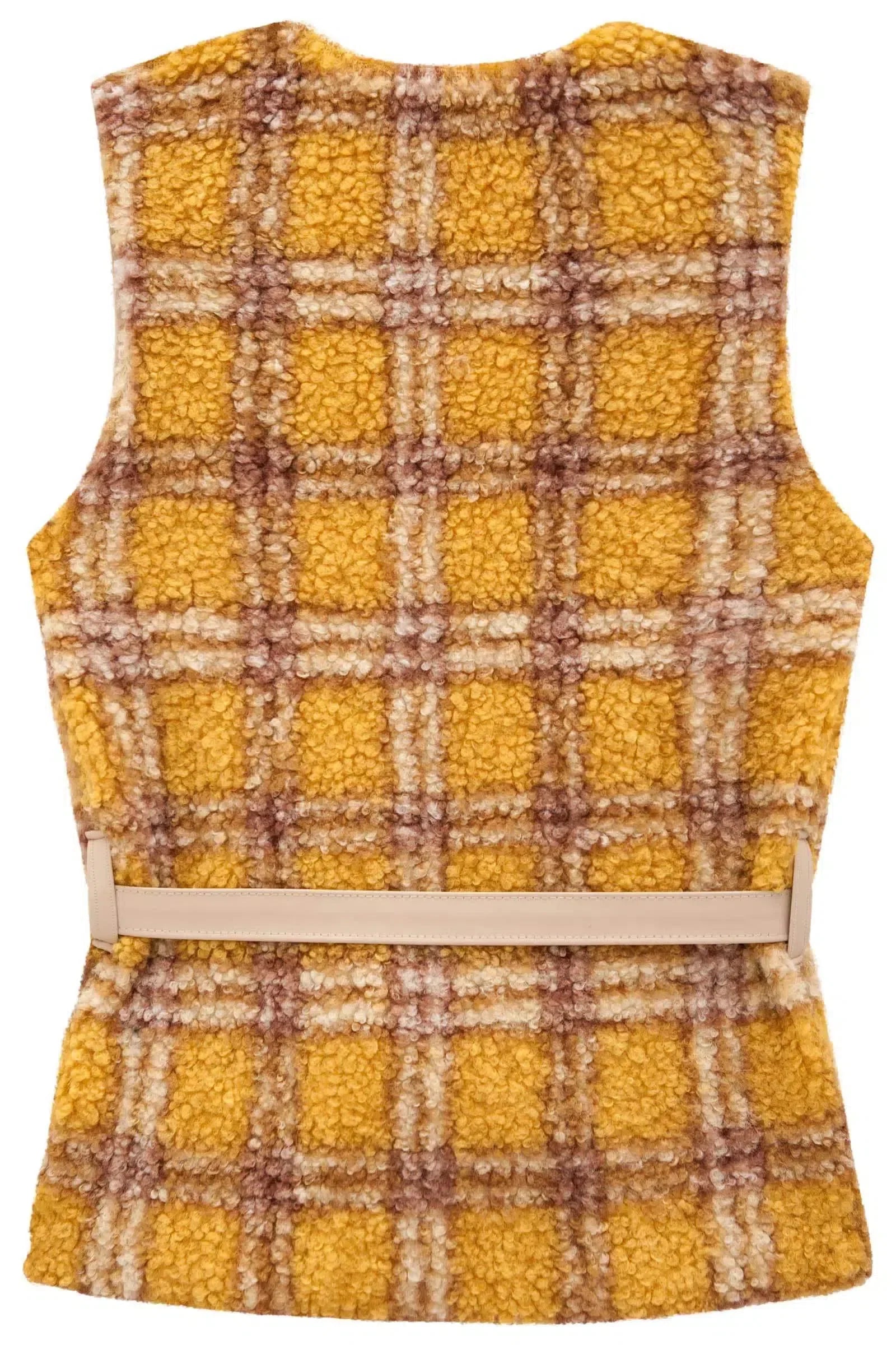 O modelo alongado, com comprimento abaixo da cintura, confere um ar moderno e despojado ao look. A estampa xadrez adiciona um toque de estilo e personalidade à peça. O cinto em couro sintético acompanha o colete, permitindo ajustar a peça ao corpo e definir a cintura, criando um visual mais delicado e elegante.
