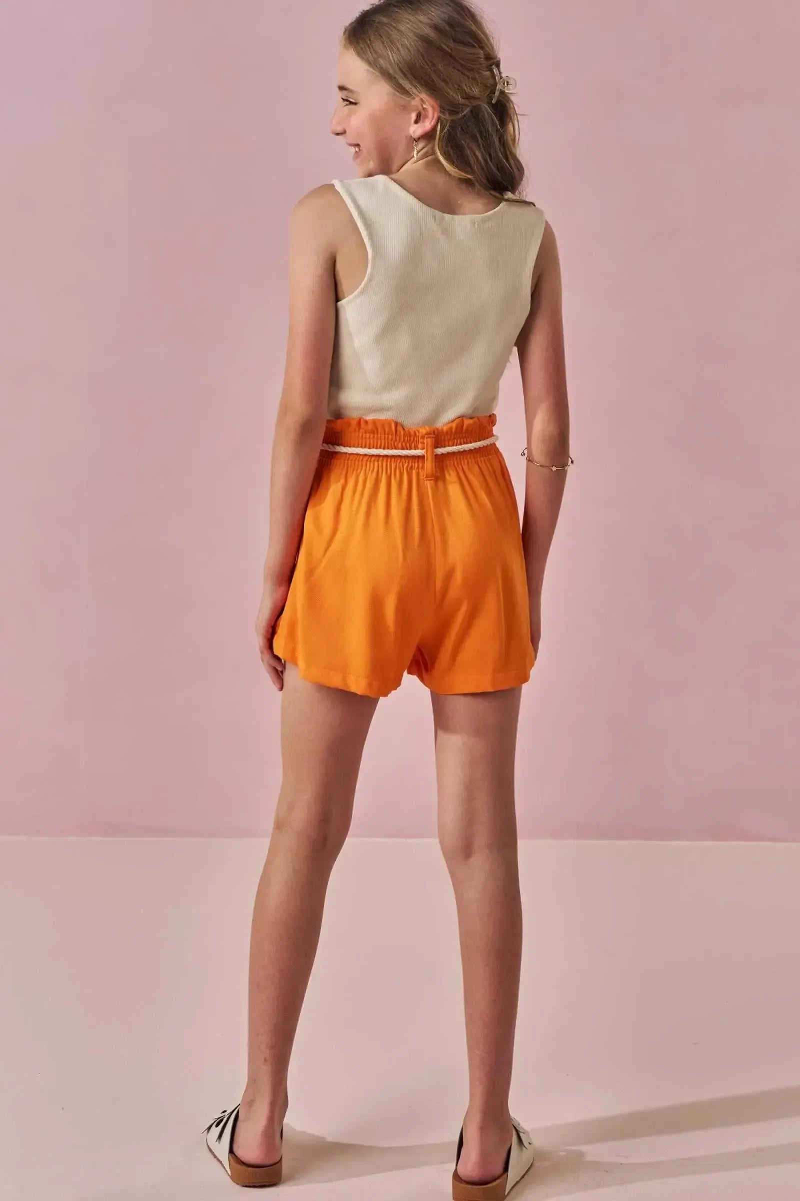 O conjunto de blusa cropped em canelado liz e shorts em viscose flare, é perfeito para as meninas que amam um look cheio de estilo e personalidade! disponível em uma cor super estilosa - laranja - ele oferece um toque super macio e confortável, ideal para o dia a dia e para manter a pele fresquinha.