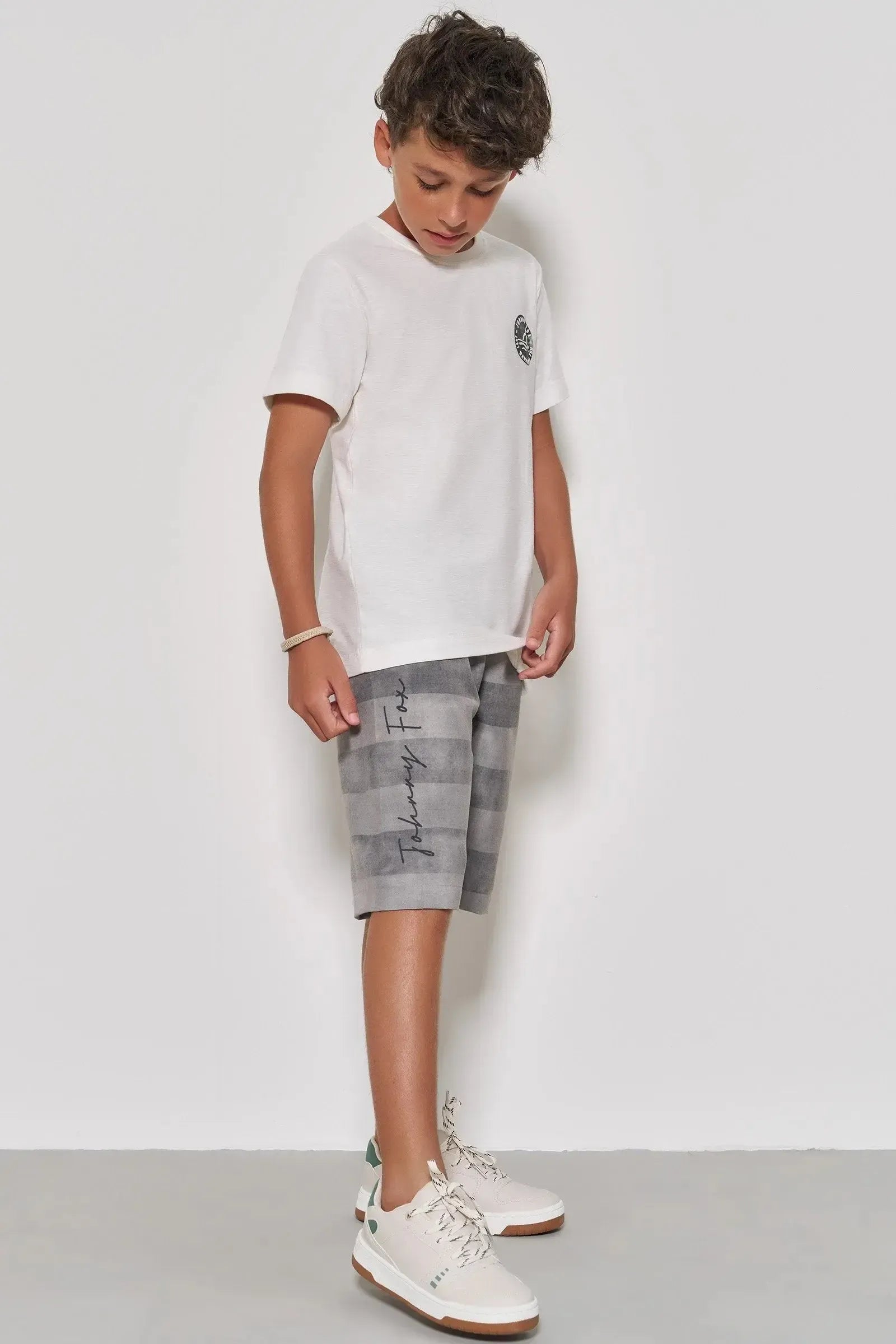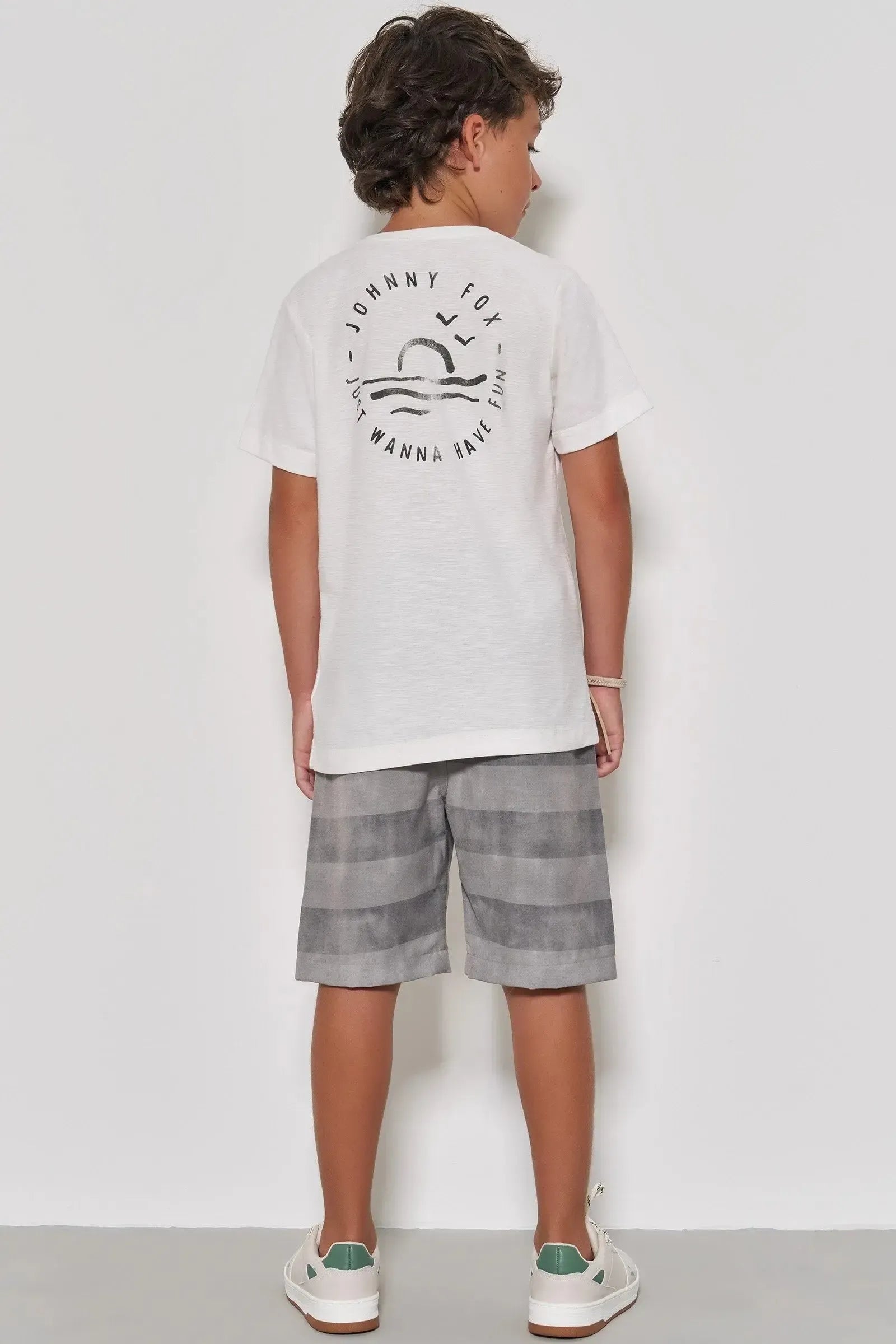 Conjunto de Camiseta em Meia Malha Flamê e Bermuda em Alfaiataria Katherine com Elastano 88275 Johnny Fox Teen Menino