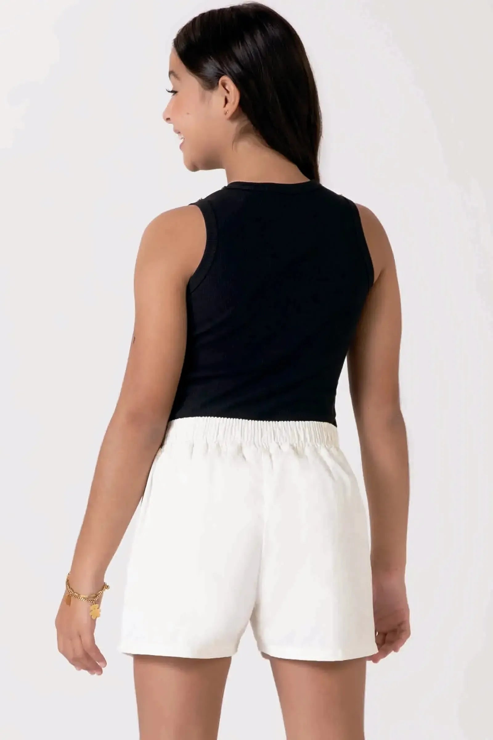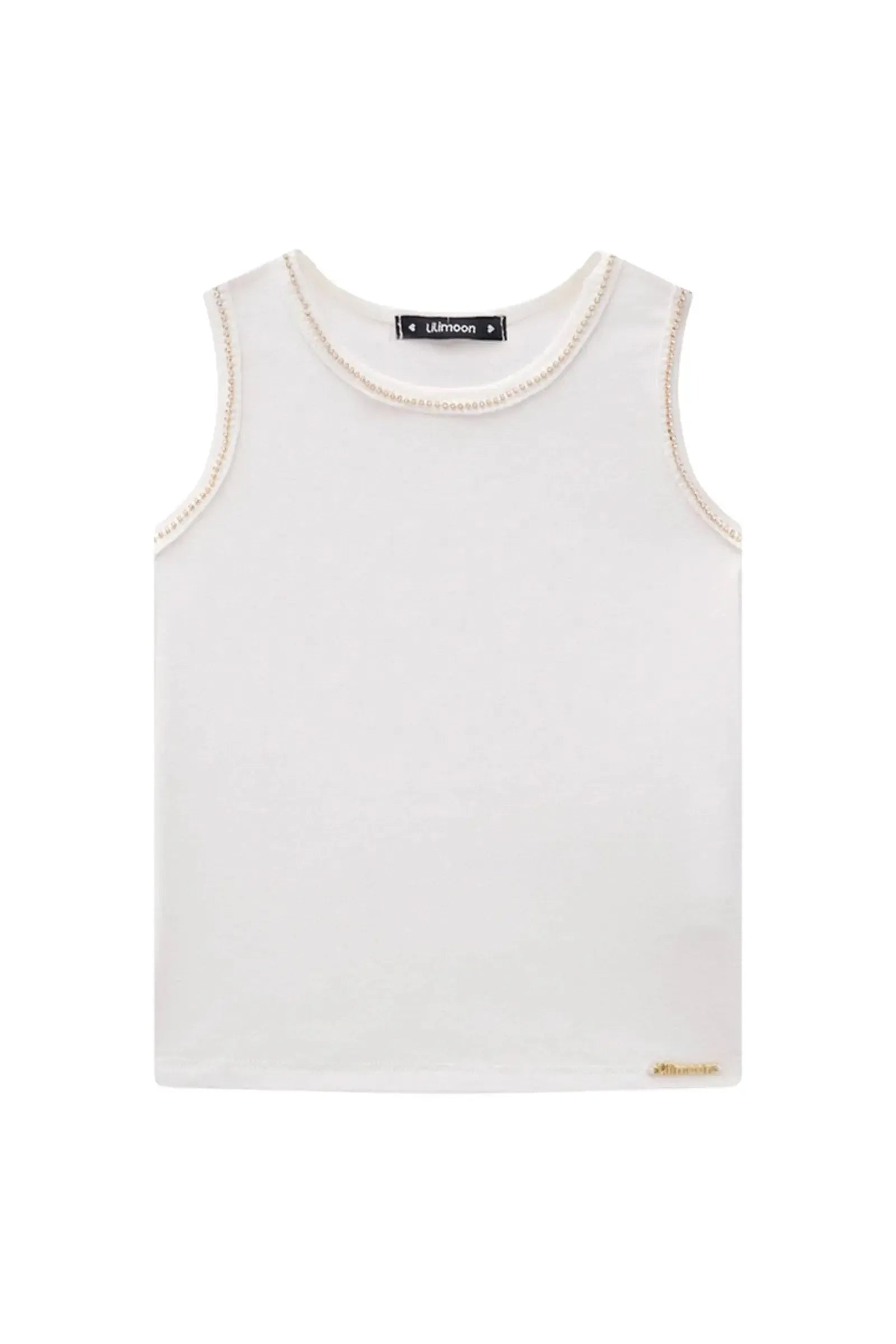 A regata em canelado liz, é uma peça delicada e cheia de charme, perfeita para as pequenas que amam um look cheio de estilo e personalidade! disponível em duas cores super estilosas - off white e preto - ela oferece um toque super macio e confortável, ideal para o dia a dia e para manter a pele fresquinha! A aplicação de corrente de strass, adiciona um charme especial à peça.