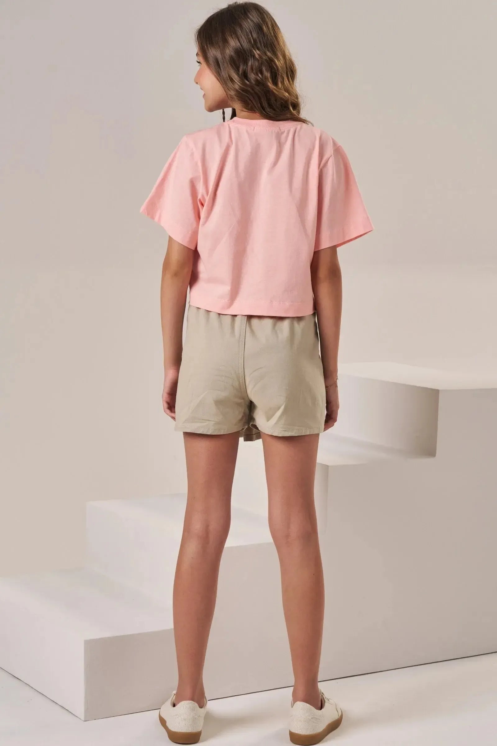 O shorts em sarja com elastano, é uma peça delicada e cheia de charme, perfeito para as meninas que amam estilo e conforto em um look só! Disponível em duas cores super estilosas - caqui e preto - ele oferece um toque super macio e confortável, ideal para diversas ocasiões.
