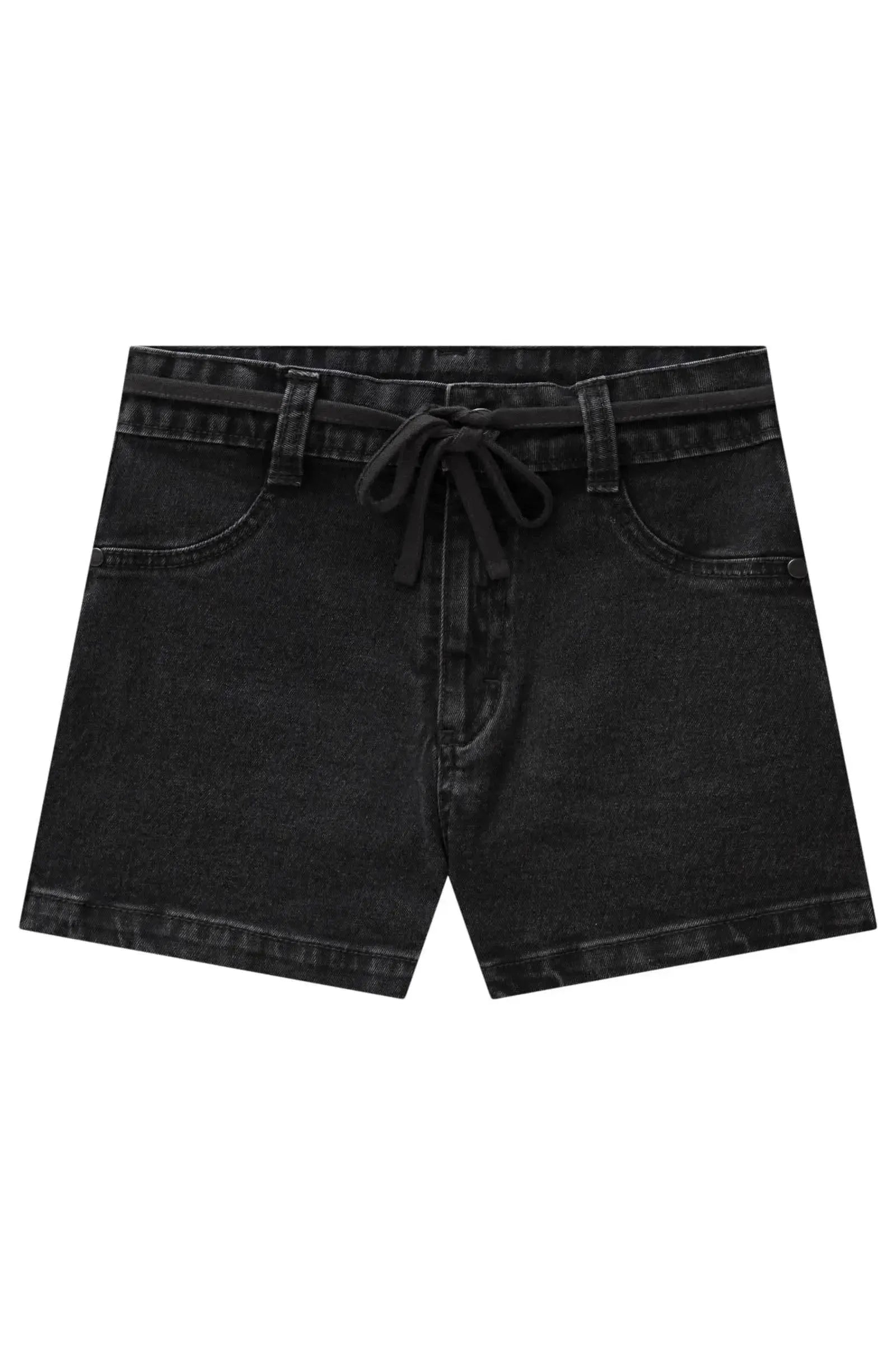O shorts em jeans com elastano, é uma peça delicada e cheia de charme, perfeito para as meninas que amam estilo e conforto em um look só! Disponível em uma cor super estilosa - preto - ele oferece um toque super macio e confortável, ideal para diversas ocasiões.