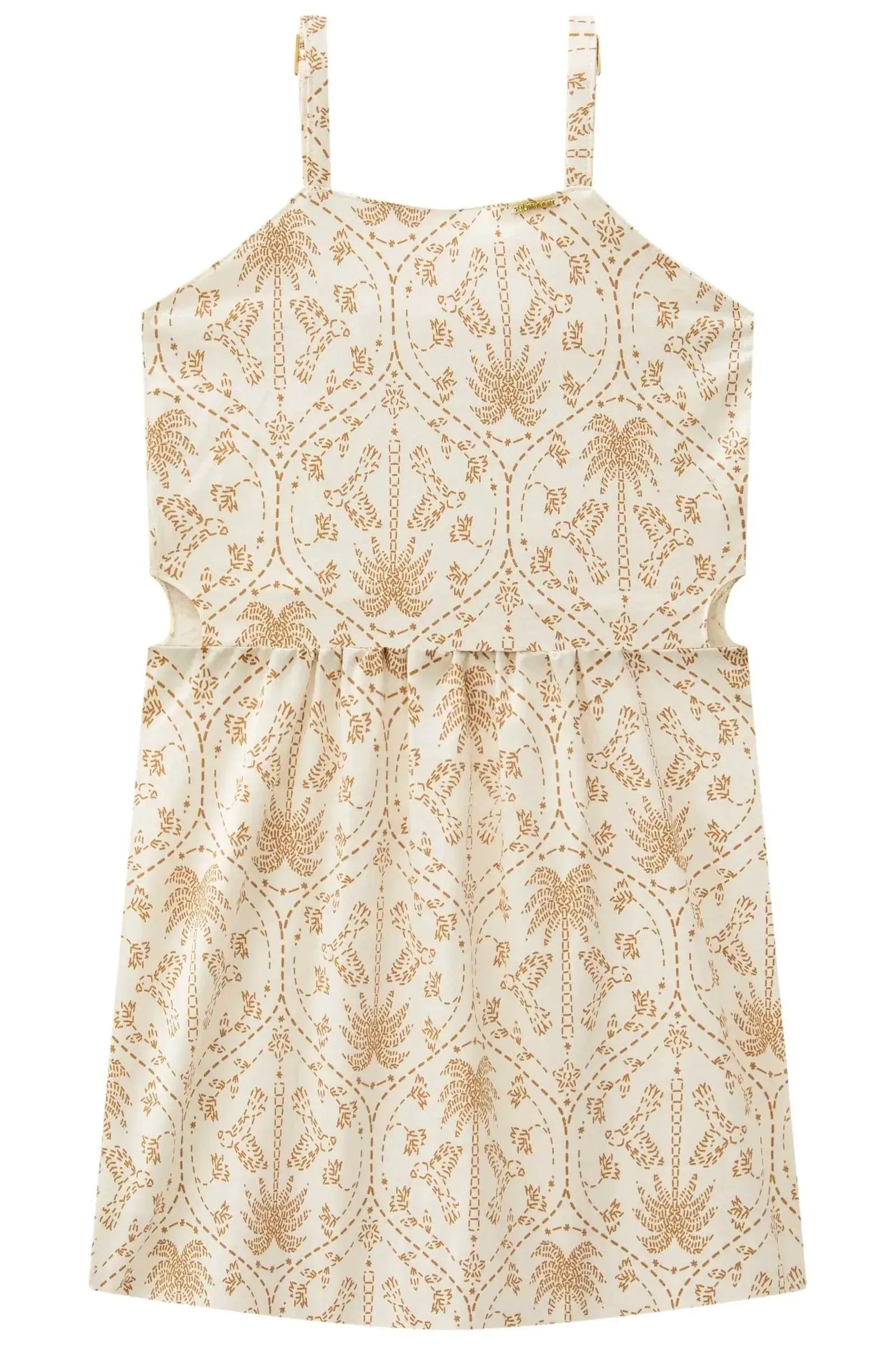 O vestido em sarja com elastano, é uma peça delicada e cheia de charme, perfeito para as meninas que amam estilo e conforto em um look só! Disponível em uma cor super estilosa - bege - ele oferece um toque super macio e confortável, ideal para diversas ocasiões.
