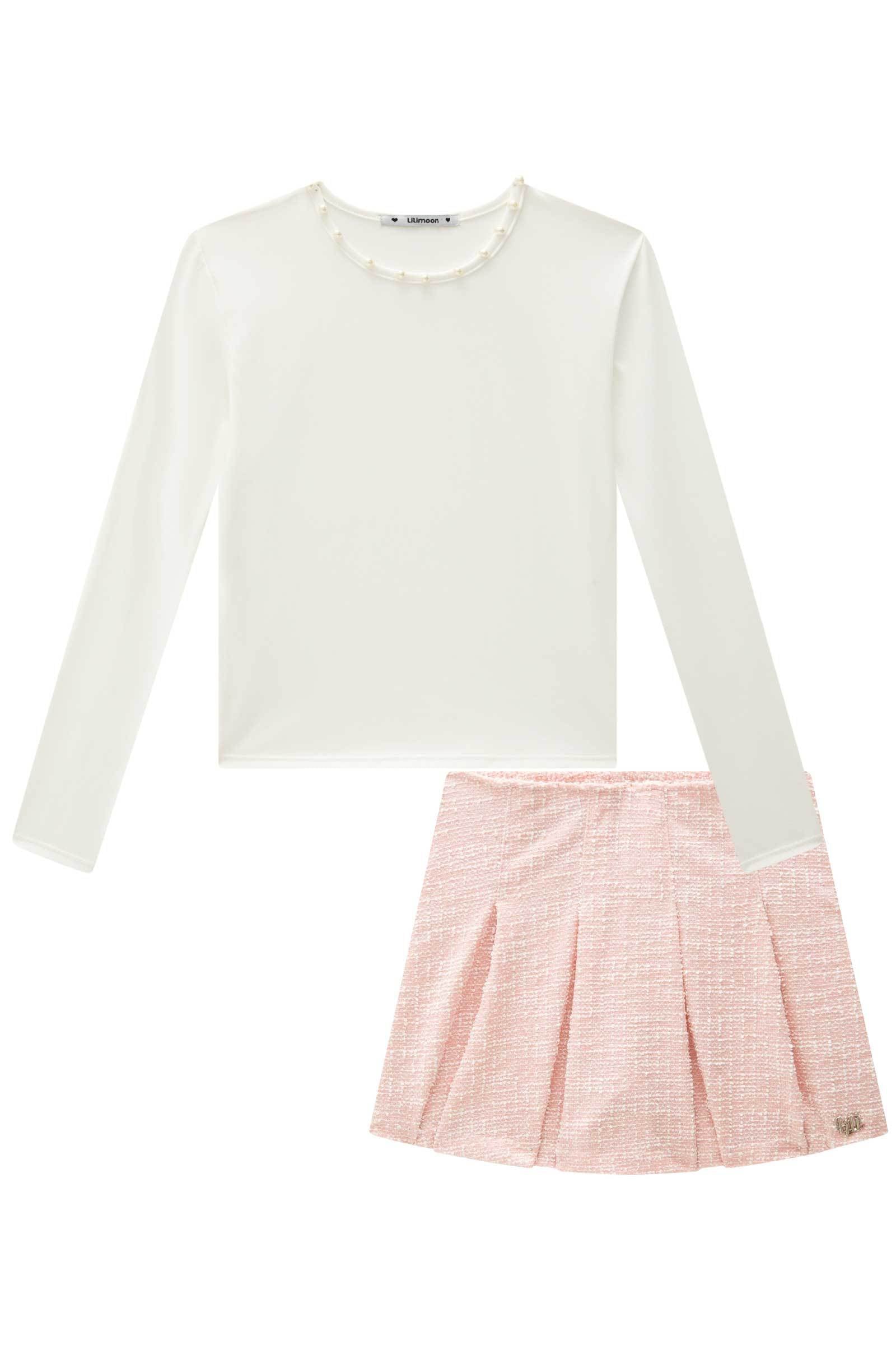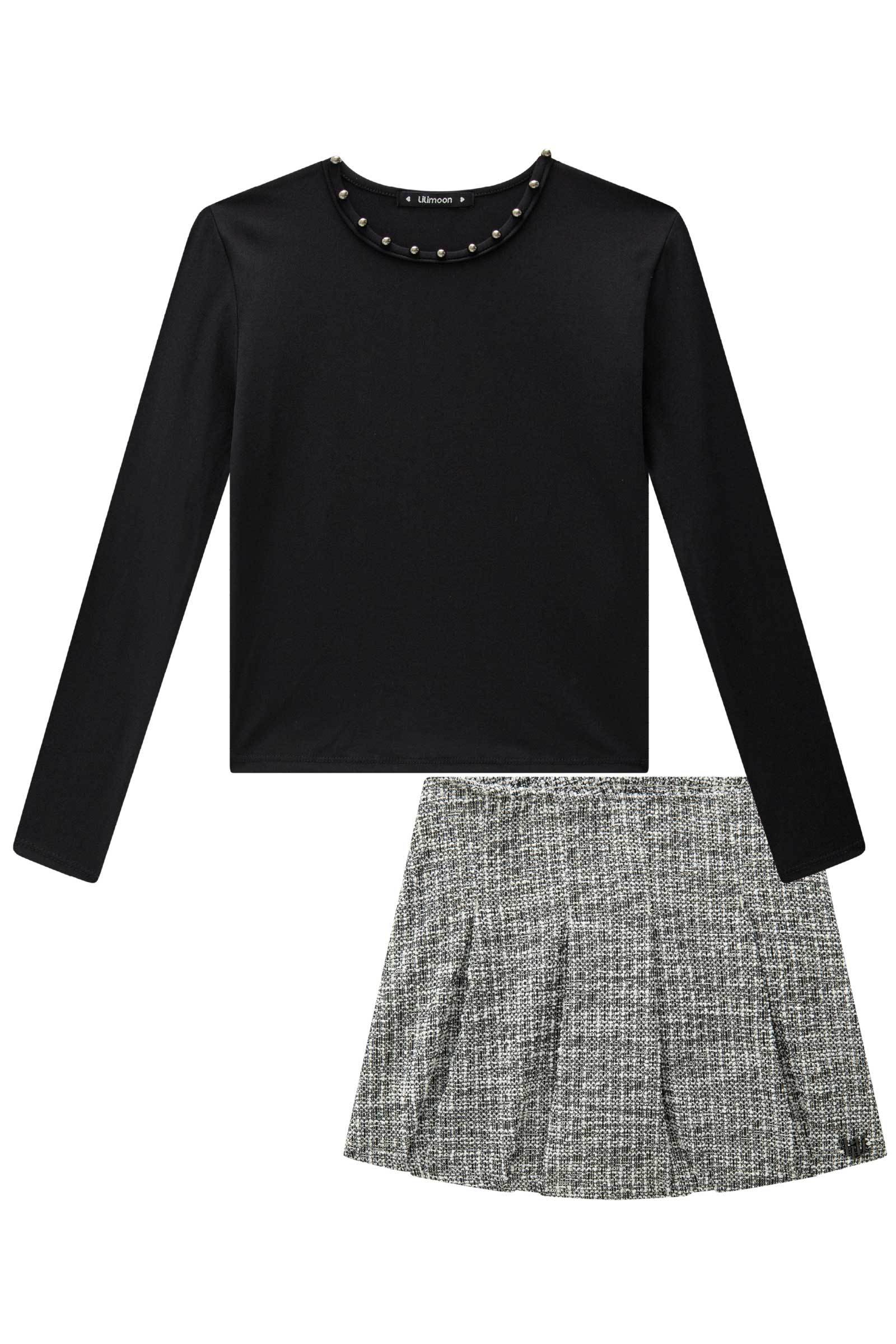 Conjunto de Blusa em Poliamida e Short Saia em Tweed London 90732 Lilimoon Teen Menina