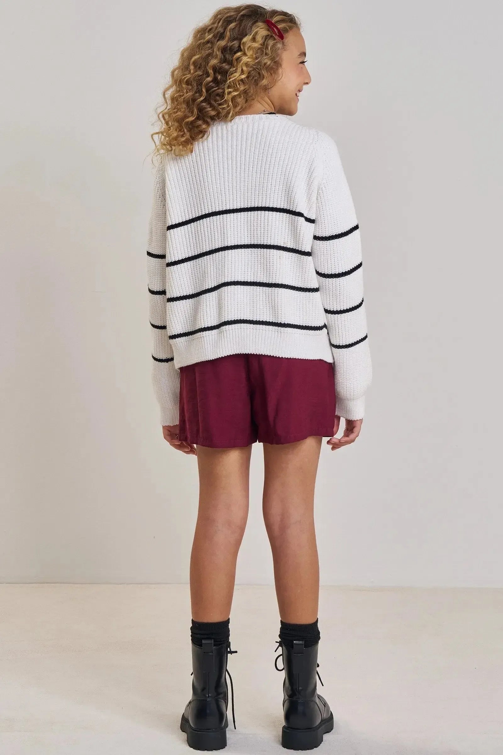 O cardigan boxy em tricô prime sem costura, é a escolha perfeita para as meninas que amam um look cheio de conforto, sem abrir mão do estilo no dia à dia! Disponível em uma cor super estilosa - off white - ela é uma peça essencial, perfeita para montar diversos looks e deixar o inverno das pequenas ainda mais estiloso!