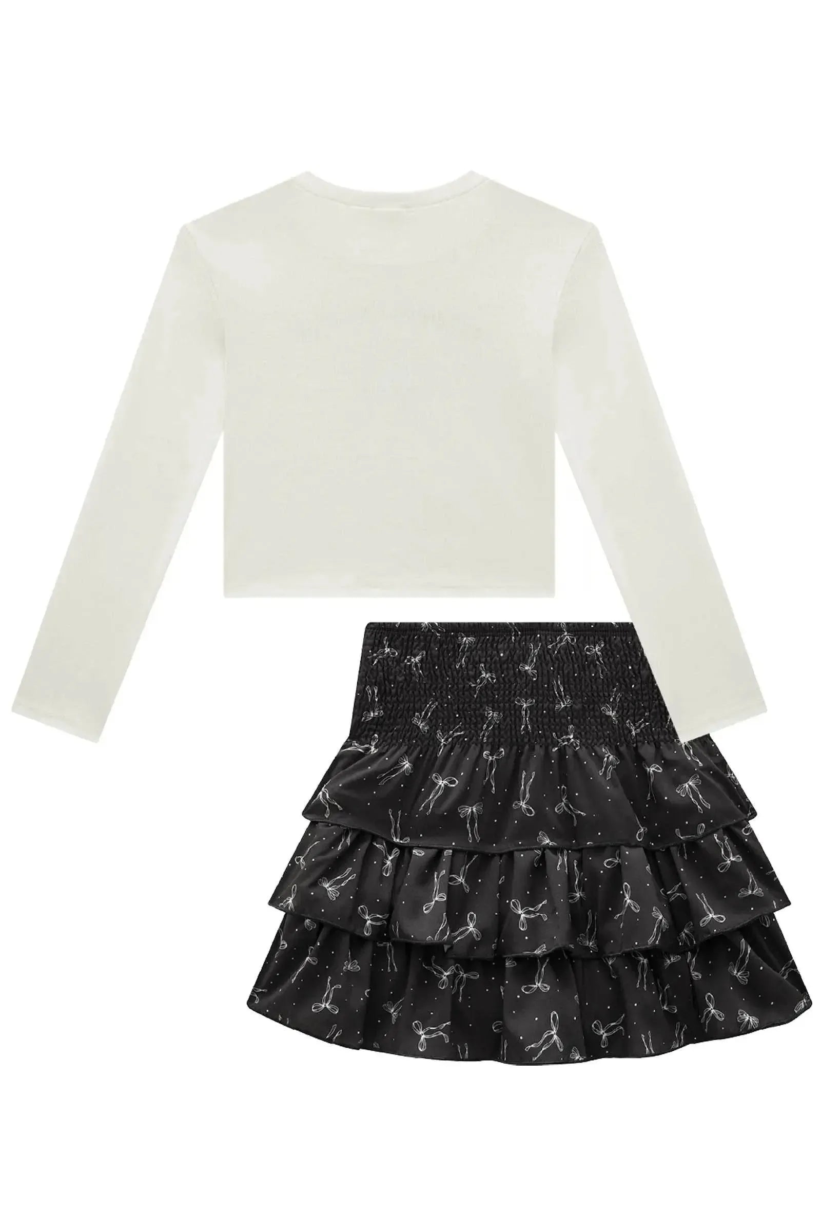 O conjunto de blusa boxy em canelado liz e saia ruffles em light peach, é a escolha perfeita para as meninas que amam um look cheio de conforto, sem abrir mão do estilo no dia à dia! Disponível em uma cor super estilosa - off white - ela é uma peça essencial, perfeita para montar diversos looks e deixar o inverno das pequenas ainda mais estiloso! A estampa divertida, adiciona um charme especial à peça.
