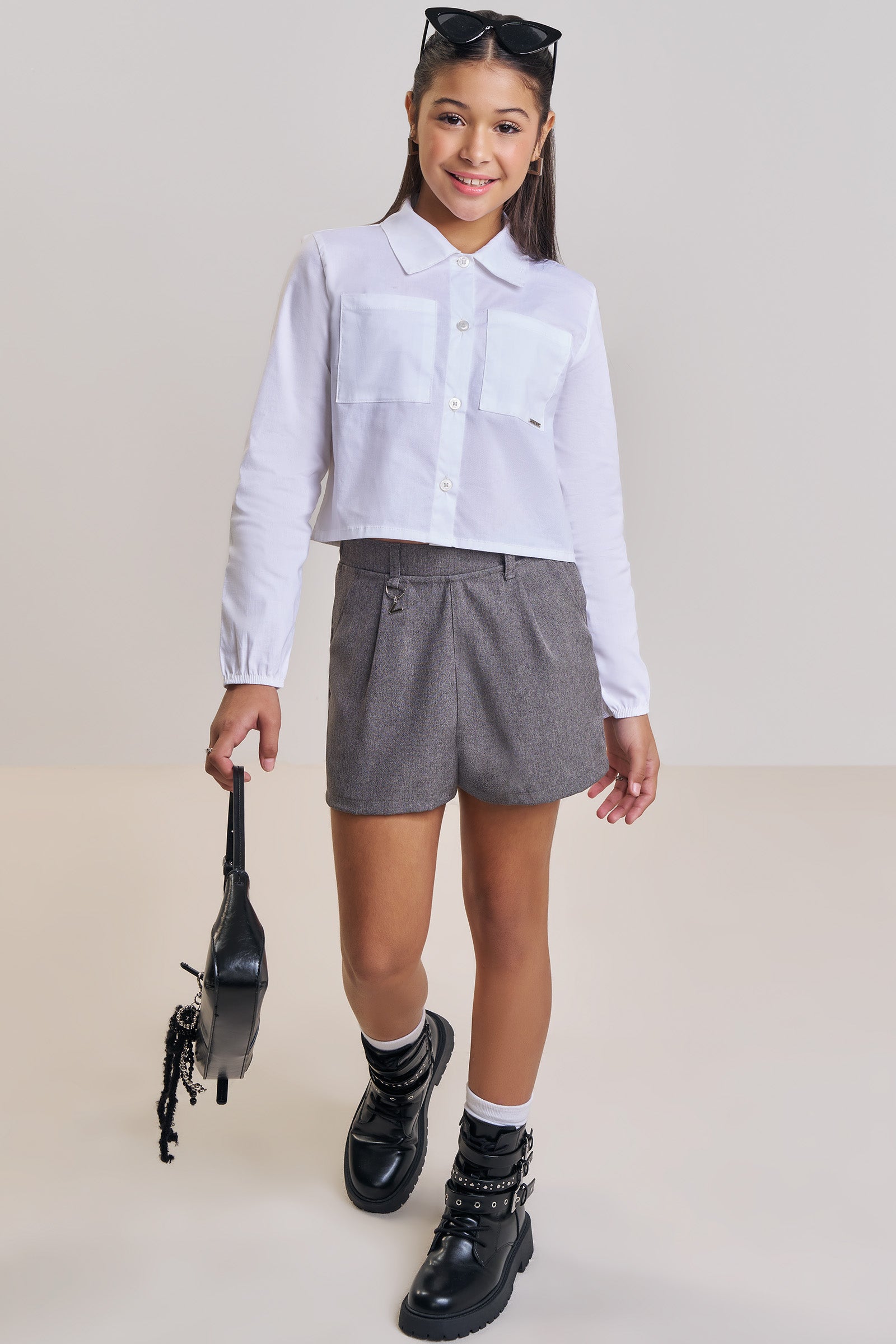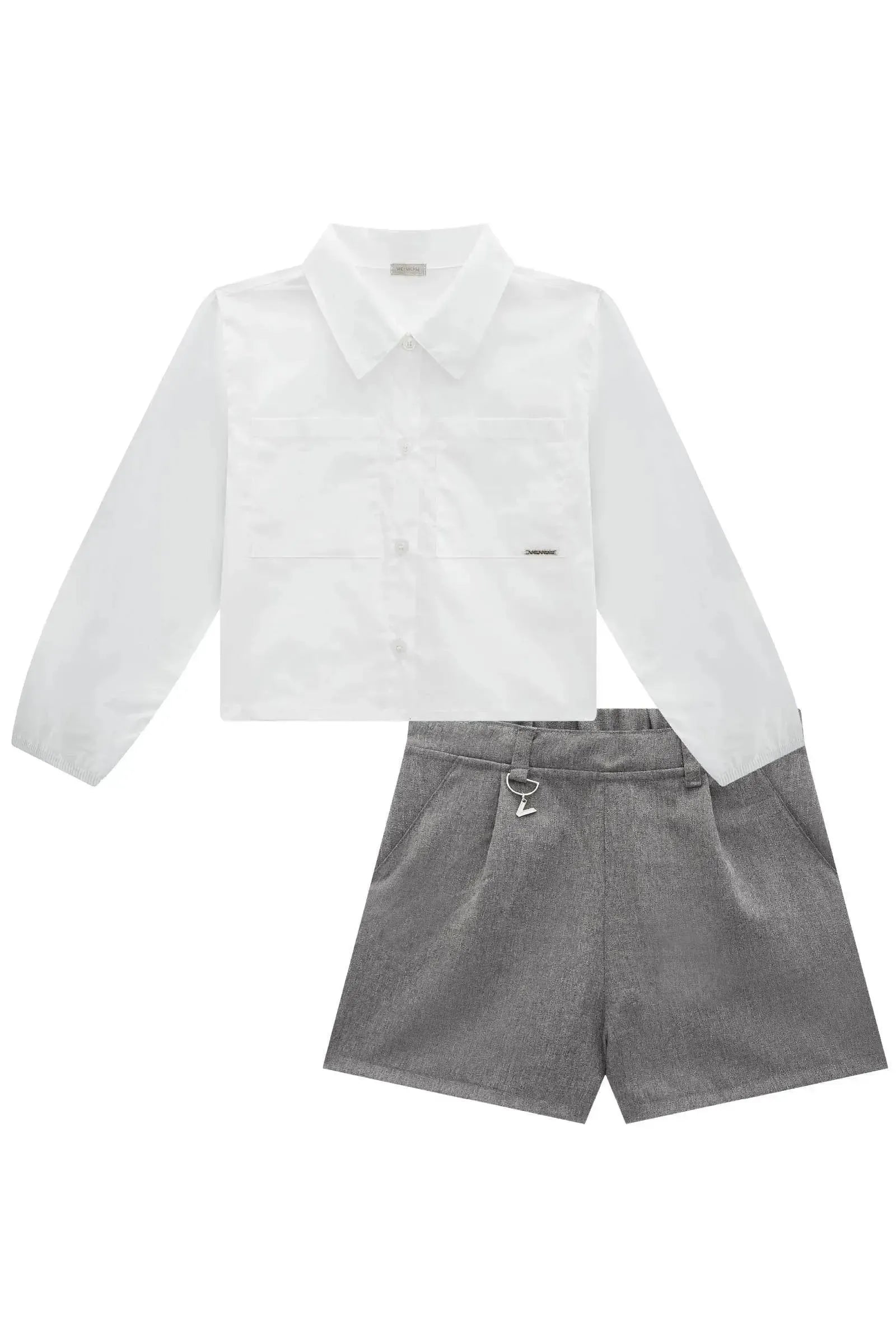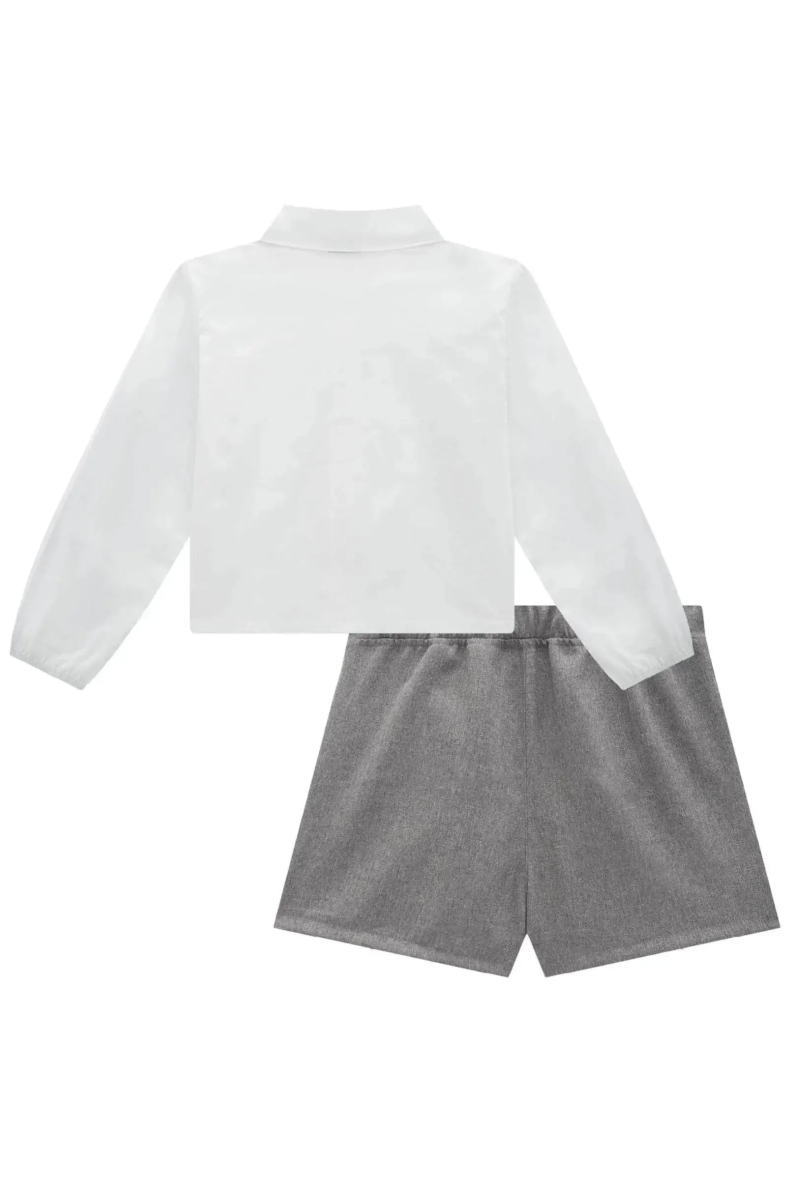 O conjunto de camisa em tricoline com elastano e shorts em alfaiataria stella, é a escolha perfeita para as meninas que amam um look cheio de conforto, sem abrir mão do estilo no dia à dia! Disponível em uma cor super estilosa - branco - ela é uma peça essencial, perfeita para montar diversos looks e deixar o inverno das pequenas ainda mais estiloso!