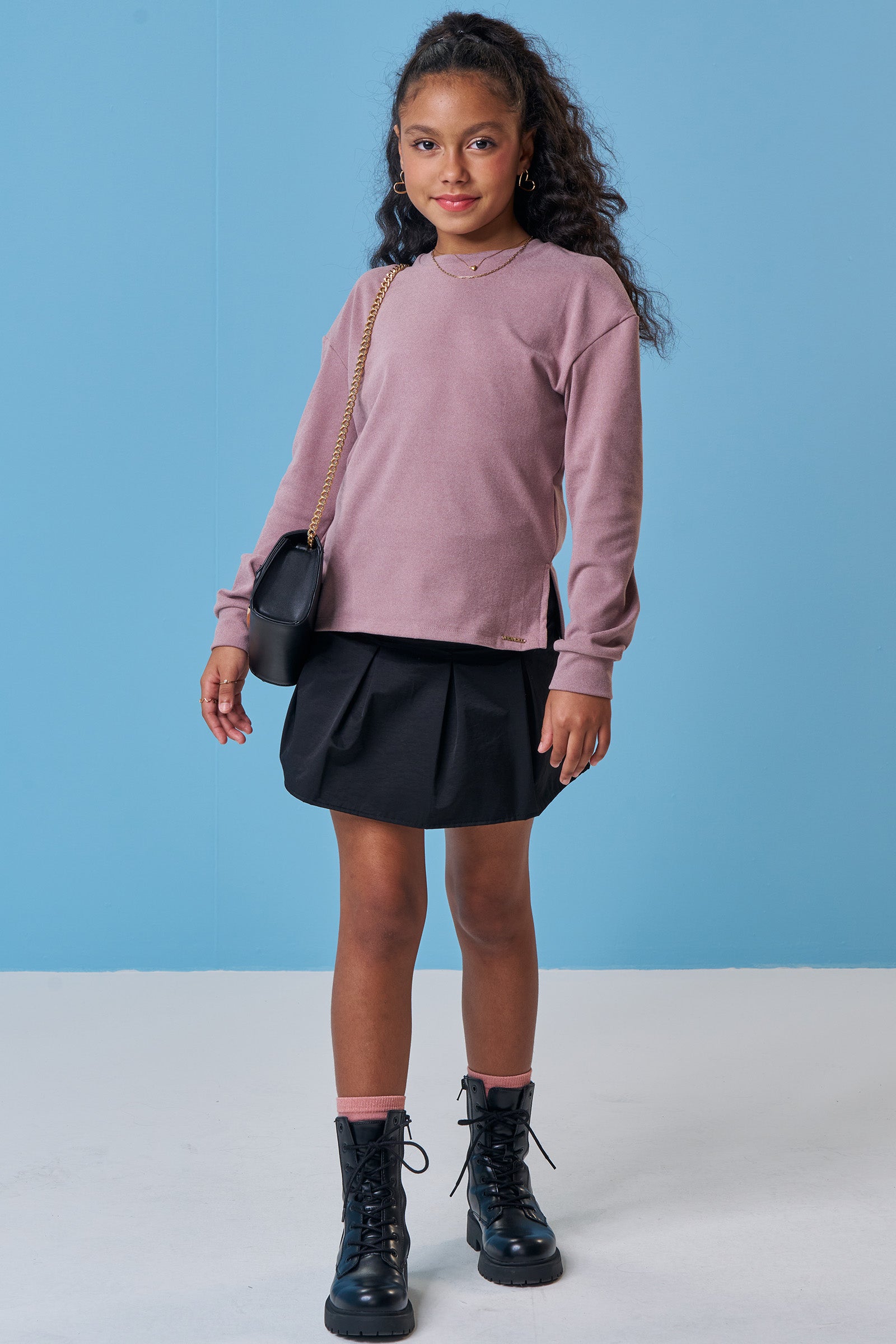 A saia em alfaiataria com shorts embutido, é a escolha perfeita para as meninas que amam um look cheio de conforto, sem abrir mão do estilo no dia à dia! Disponível em uma cor super estilosa - preto - ela é uma peça essencial, perfeita para montar diversos looks e deixar o inverno das pequenas ainda mais estiloso!
