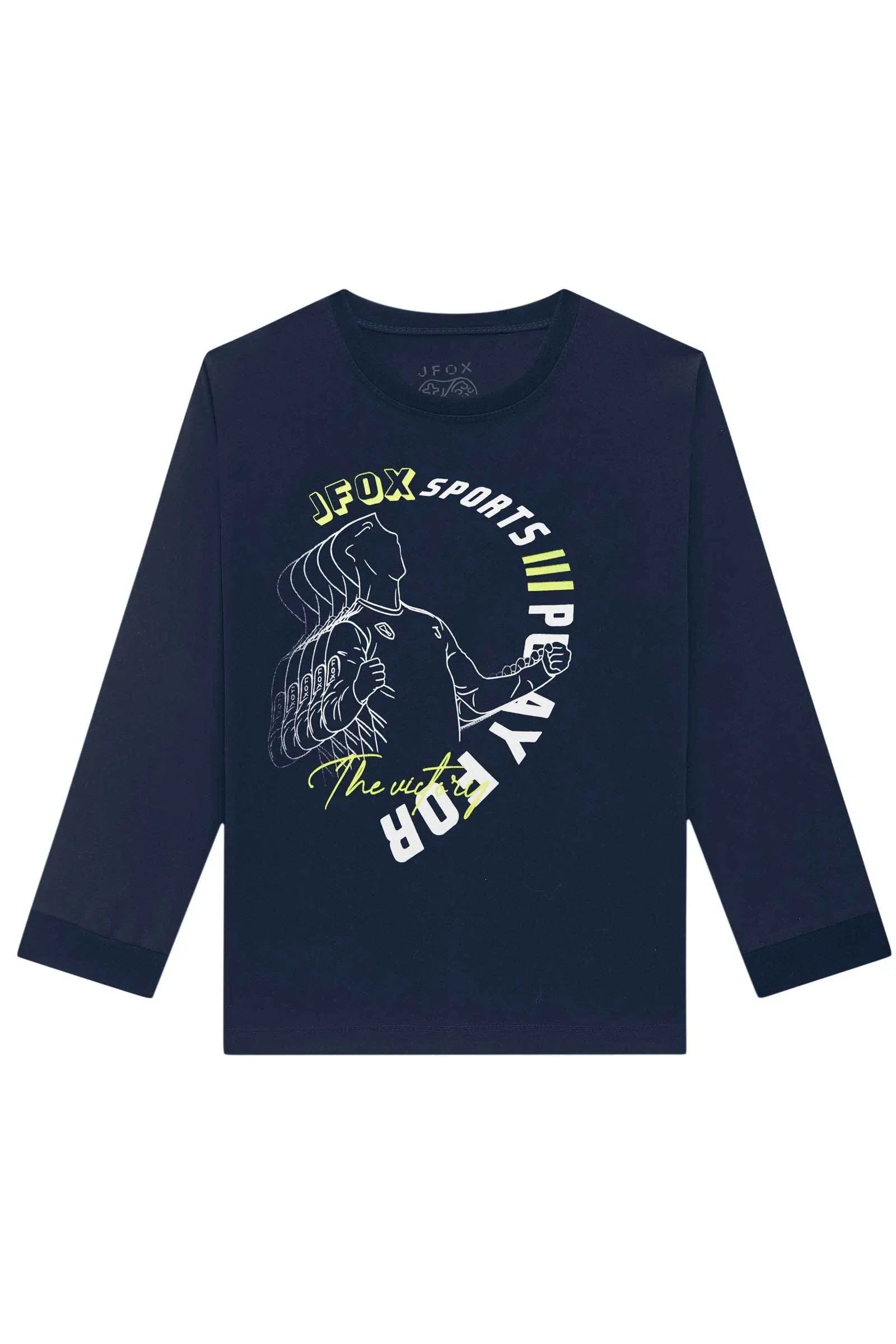 Clássica camiseta manga longa confeccionada em meia malha da Linha Games Johnny Fox. Possui estampa frontal perfeita para os meninos apaixonados por futebol. Detalhe de punho aplicado em ribana. Etiqueta carimbo interna para maior conforto do menino.