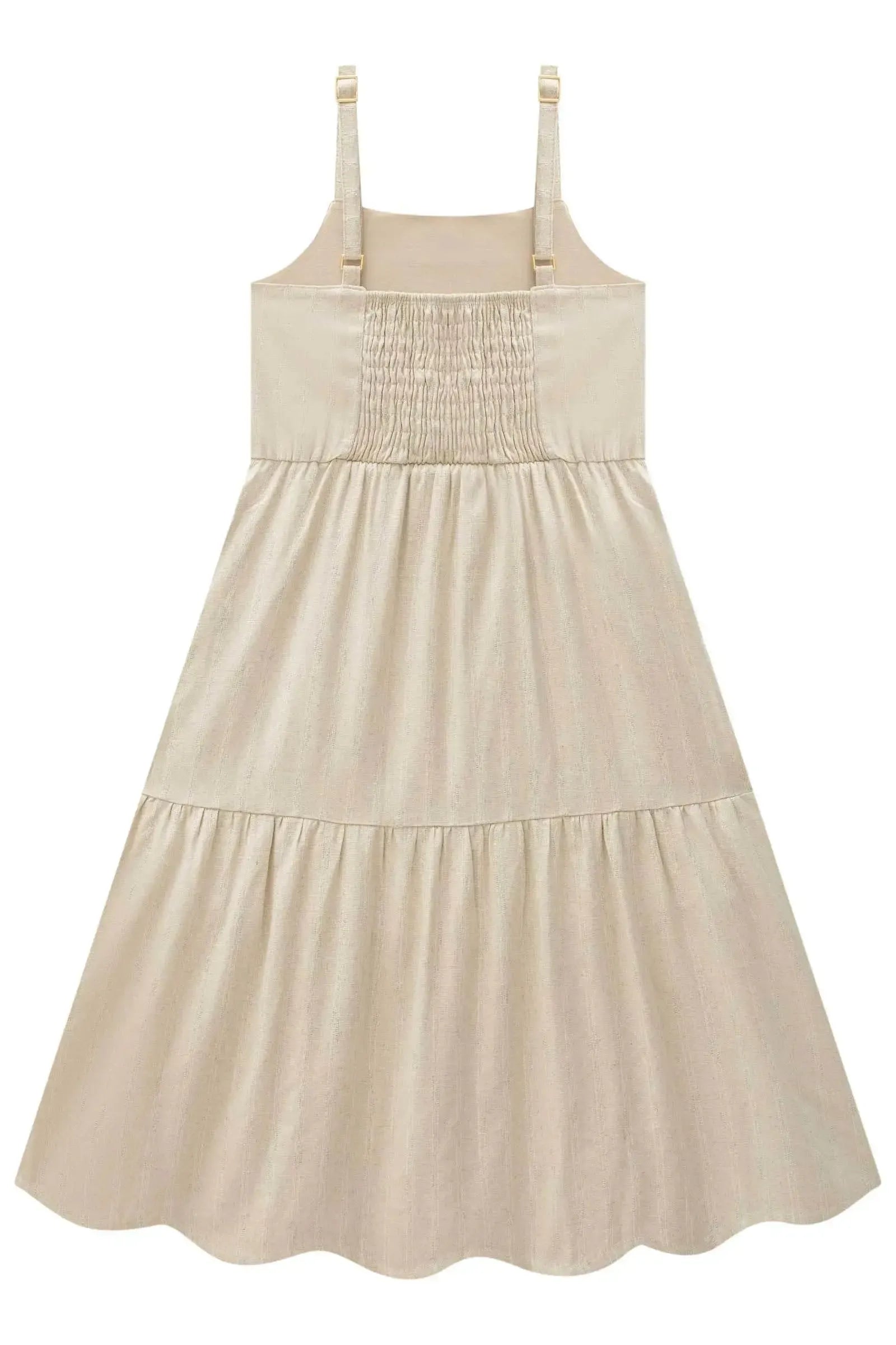 O vestido new midi em linho bordado prata, é uma peça cheia de charme, perfeito para as meninas que amam um look cheio de estilo e personalidade! Disponível em uma cor super estilosa - bege - ele oferece um toque super macio e confortável, ideal para o dia a dia e diversas ocasiões.