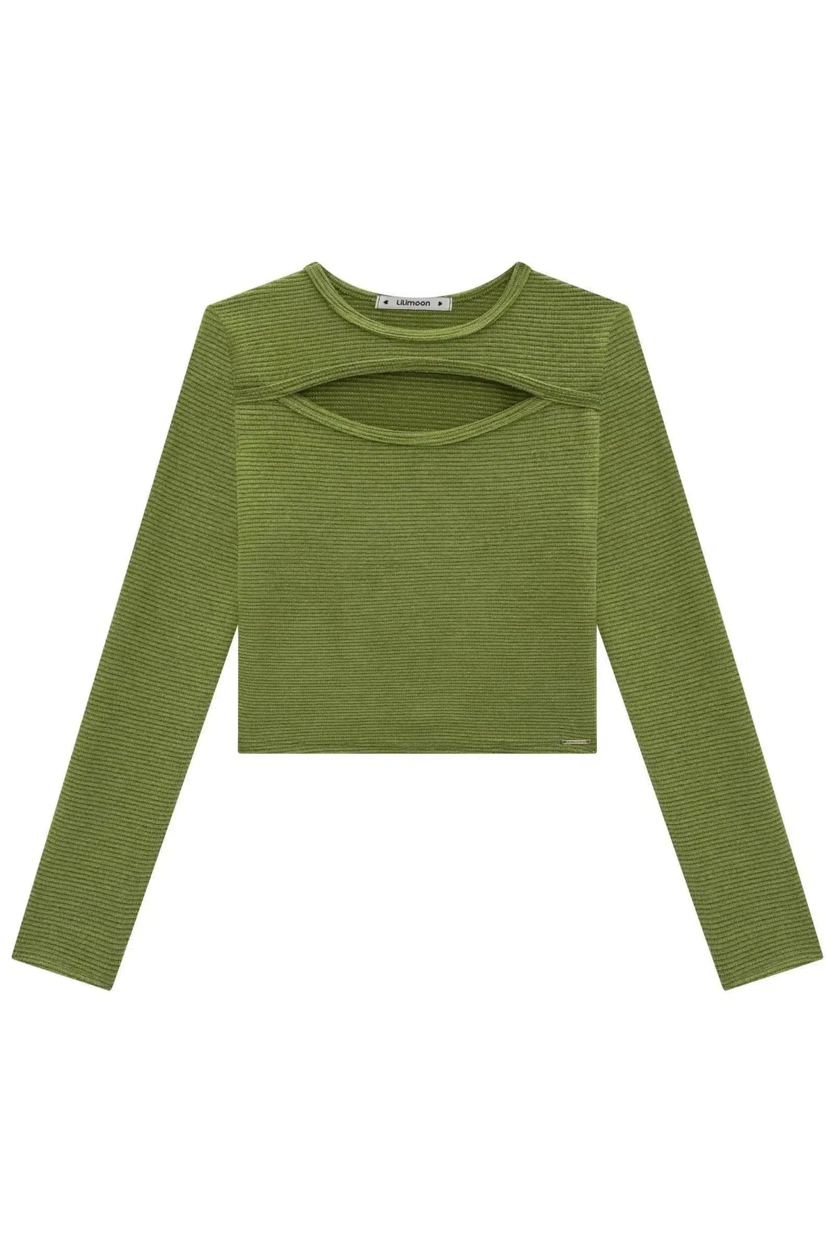 Blusa boxy Teen Feminina Em Malha Ribana Com Detalhe Cut Out Lilimoon