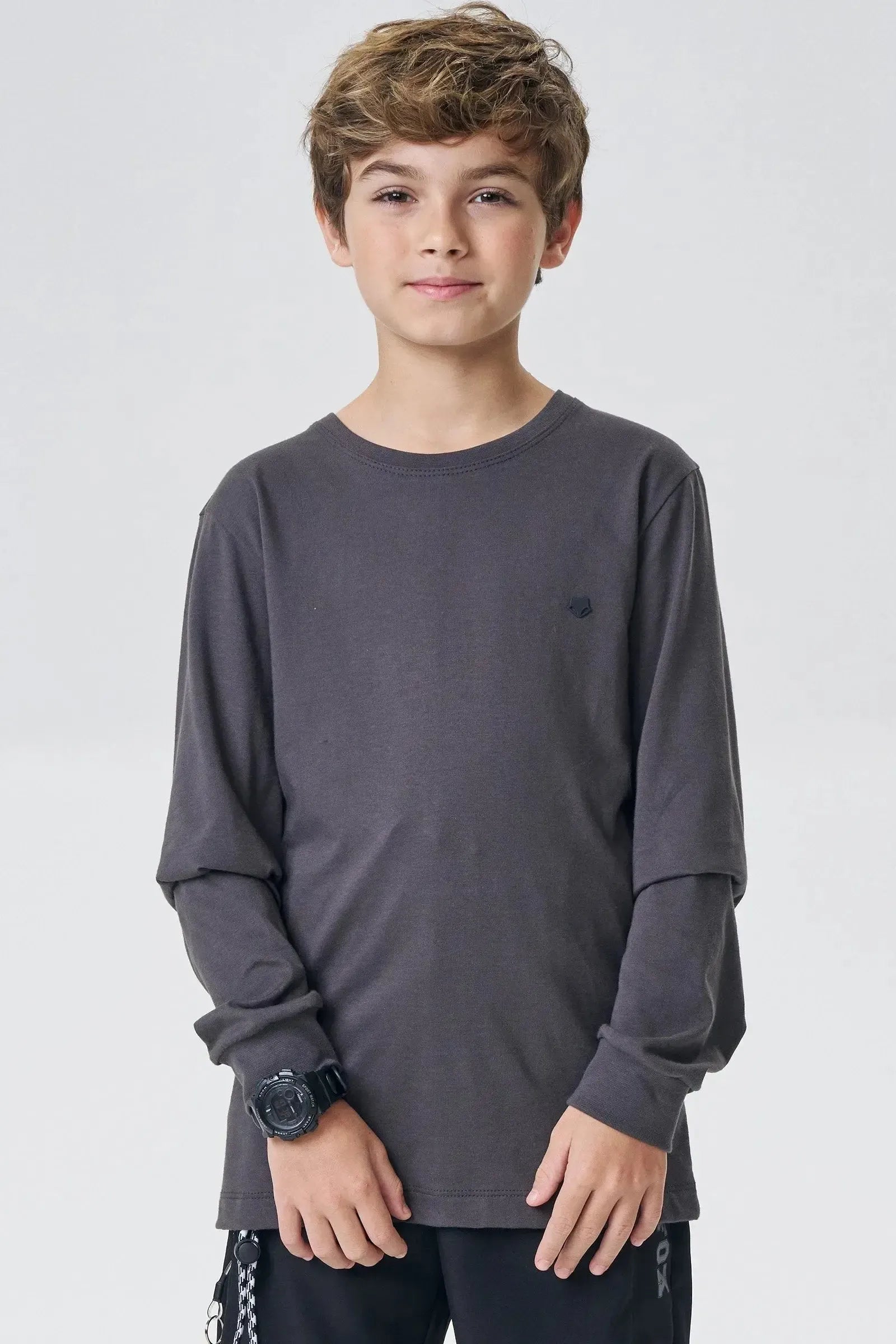 A camiseta em meia malha, é a escolha perfeita para os meninos que amam um look cheio de conforto, sem abrir mão do estilo no dia à dia! Disponível em três cores super estilosas - cinza, azul e caqui - ela é uma peça essencial, perfeita para montar diversos looks e deixar o inverno dos pequenos ainda mais estiloso!