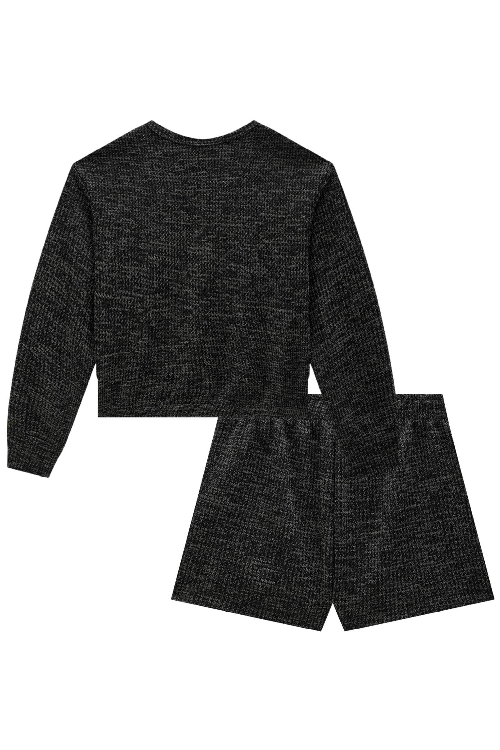 O conjunto de blusa boxy e shorts em tweed drika, é a escolha perfeita para as meninas que amam um look cheio de conforto, sem abrir mão do estilo no dia à dia! Disponível em uma cor super estilosa - cinza - ela é uma peça essencial, perfeita para montar diversos looks e deixar o inverno das pequenas ainda mais estiloso! O aviamento personalizado, adiciona um charme especial à peça.