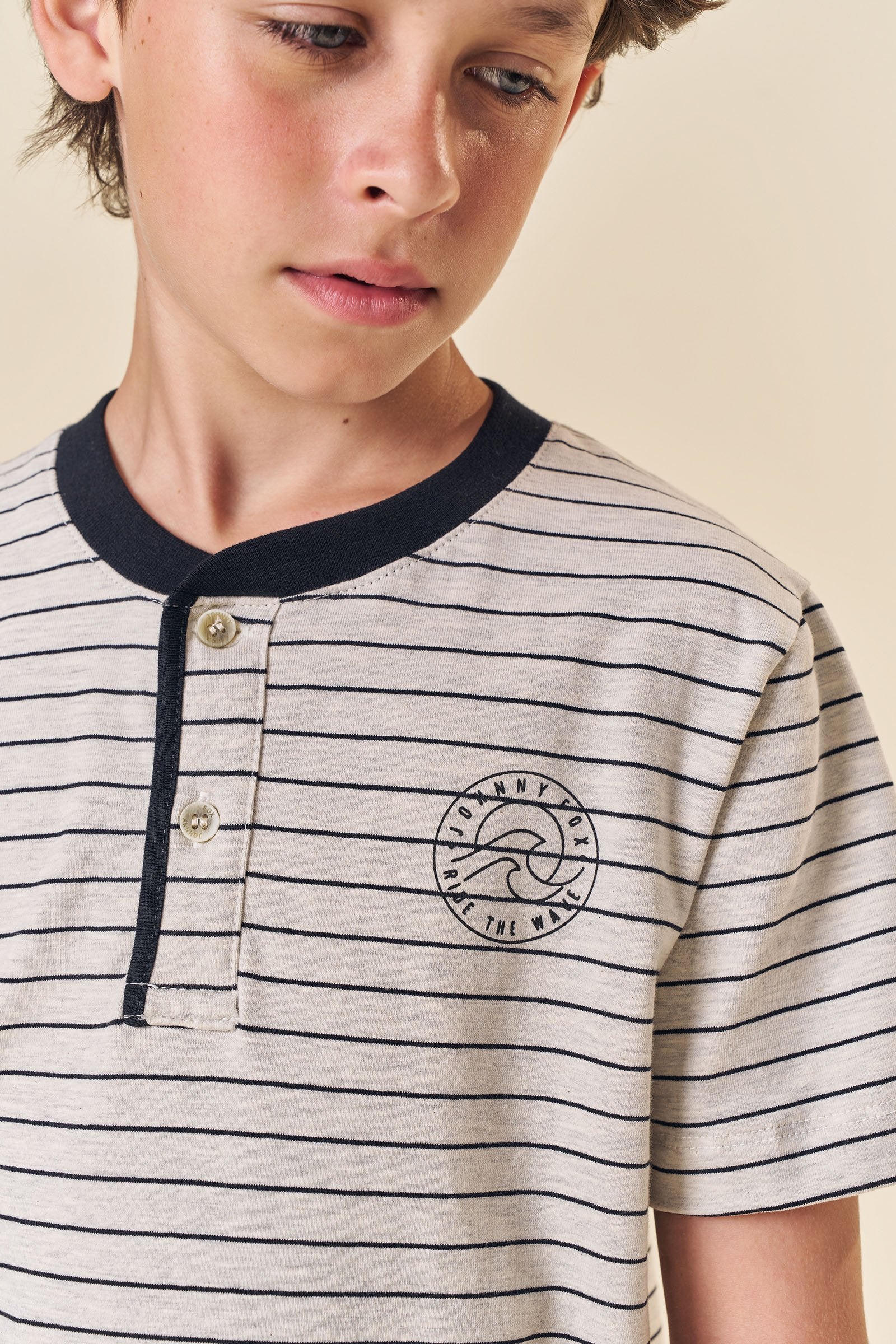 O conjunto de camiseta em cotton listrado fio tinto e bermuda em sarja caribe com elastano é a escolha perfeita para o dia a dia dos meninos, oferecendo uma combinação ideal de conforto, estilo e praticidade. Disponível em duas cores super estilosas - off white e marrom - é perfeito para passeios, brincadeiras e momentos de lazer, este conjunto se destaca pela qualidade dos materiais e pelo design casual.