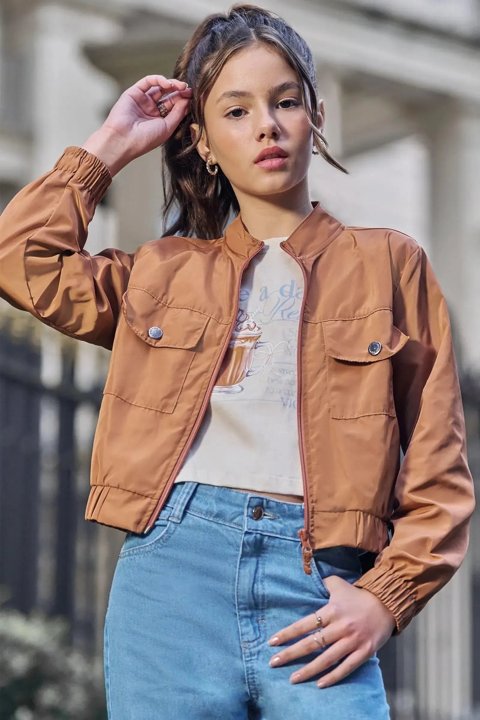 A jaqueta em nylon tecno style, é a escolha perfeita para as meninas que amam um look cheio de conforto, sem abrir mão do estilo no dia à dia! Disponível em uma cor super estilosa - bege - ela é uma peça essencial, perfeita para montar diversos looks e deixar o inverno das pequenas ainda mais estiloso!